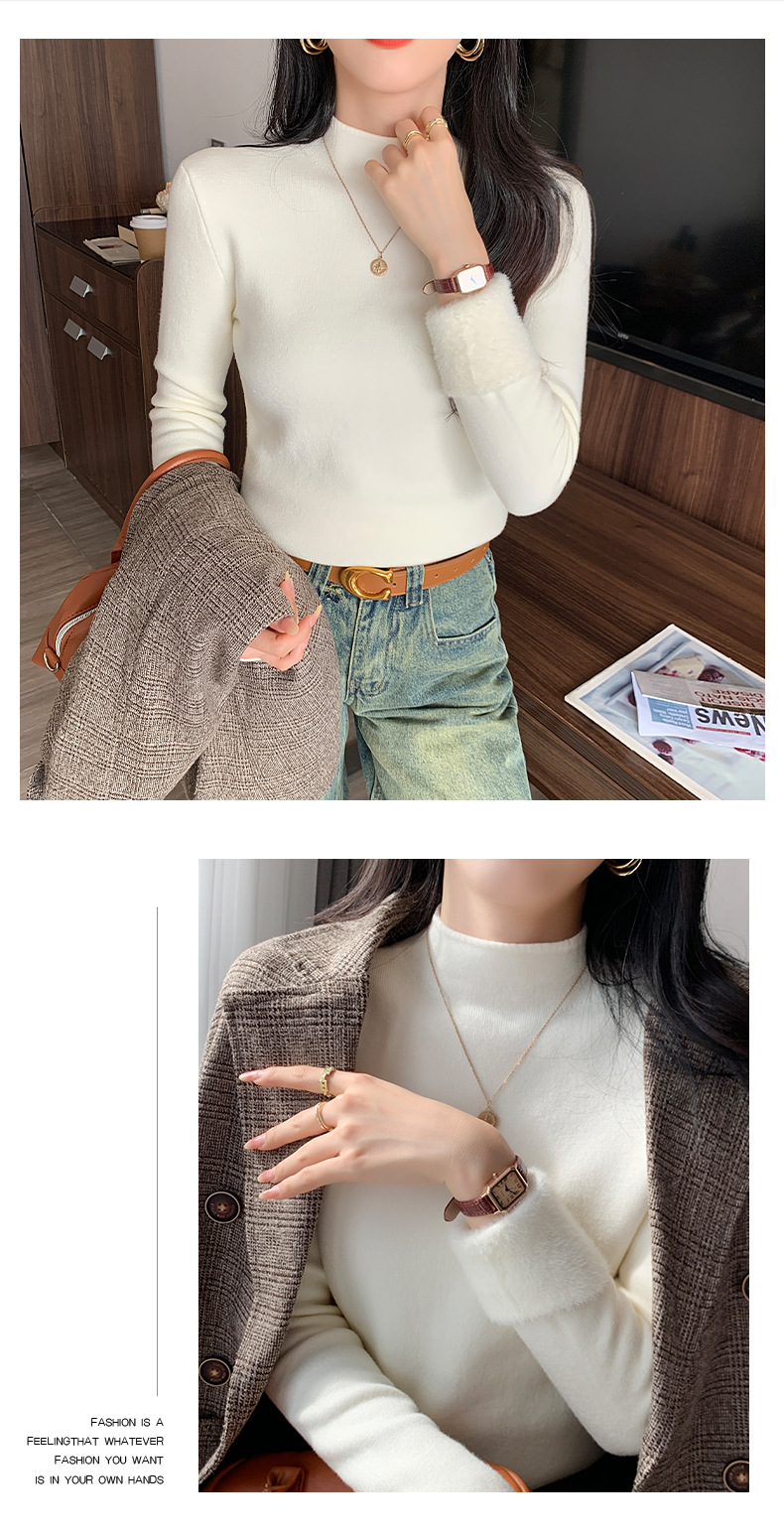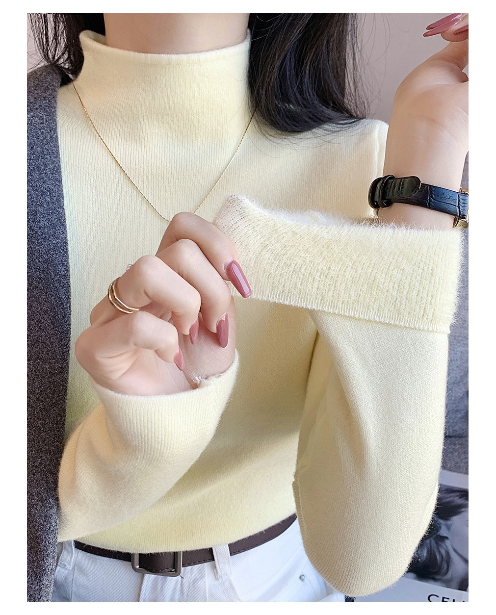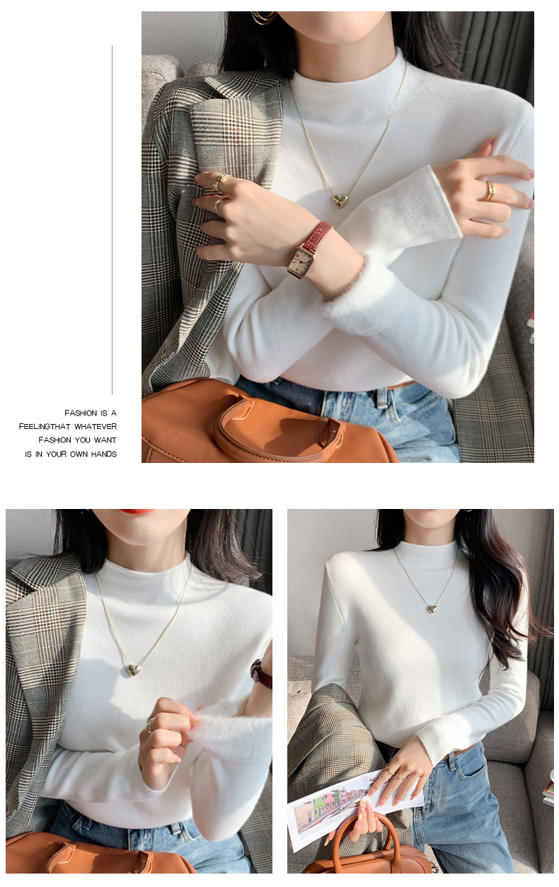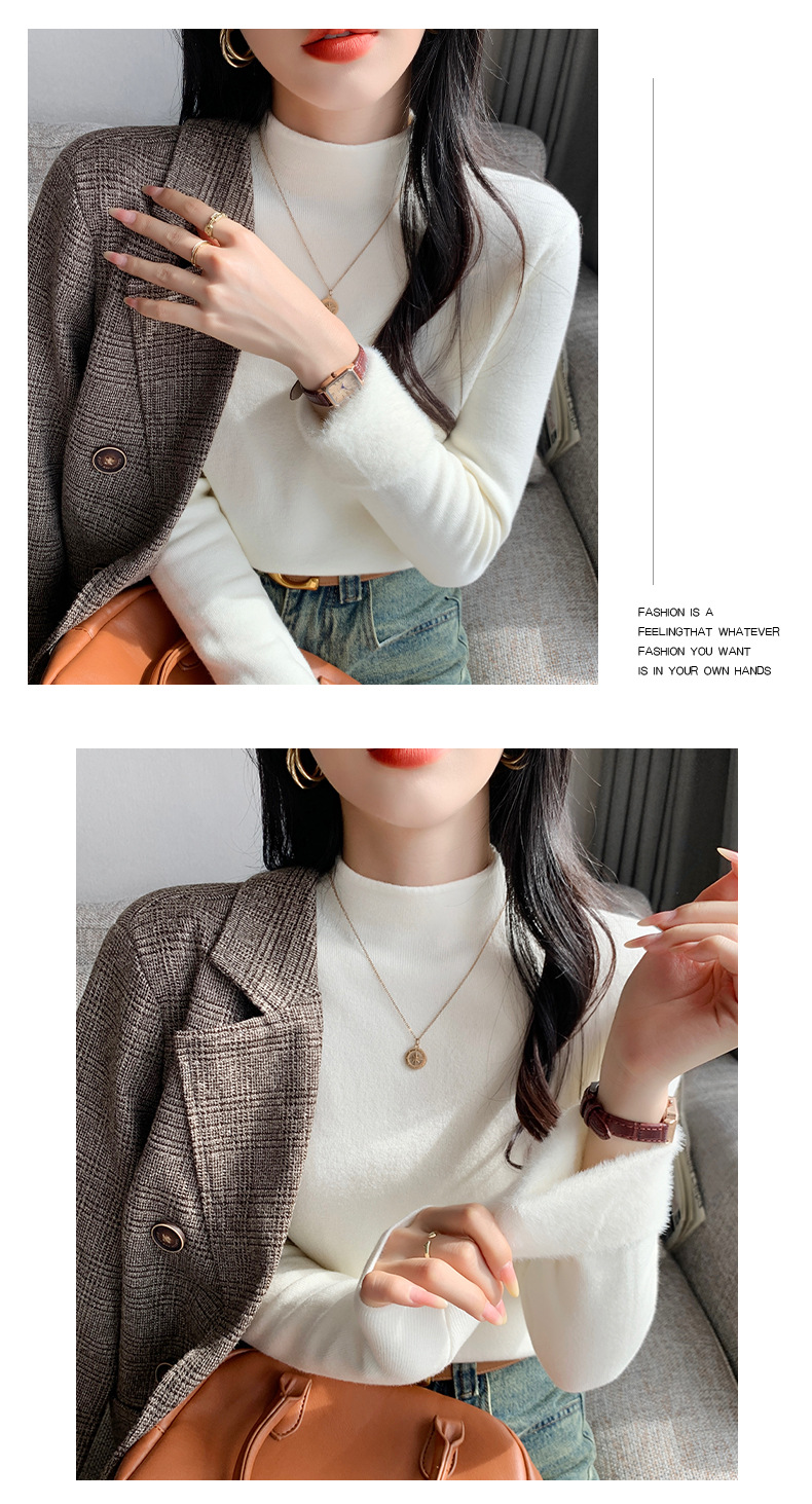 厚手の一体型ミンクベルベットの柔らかいニット素材のレディース冬用セーター、ハーフタートルネック、インナーウェア