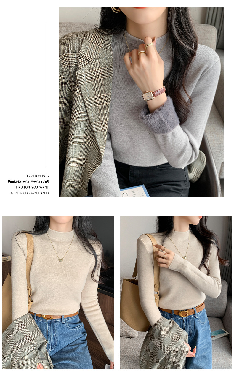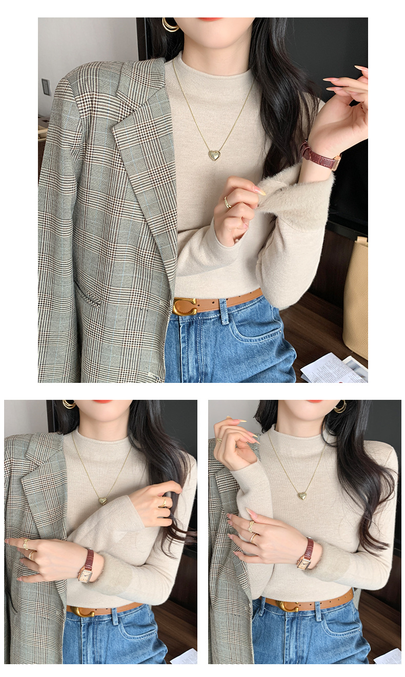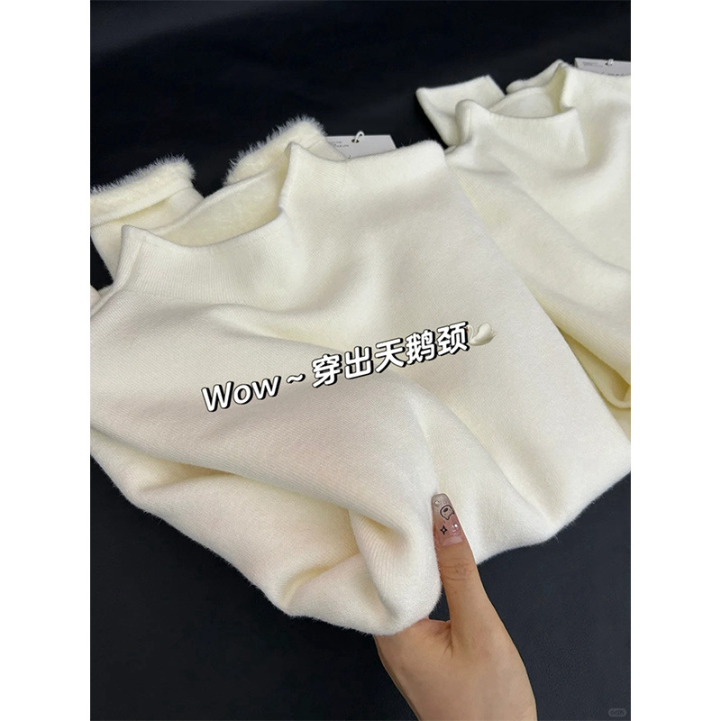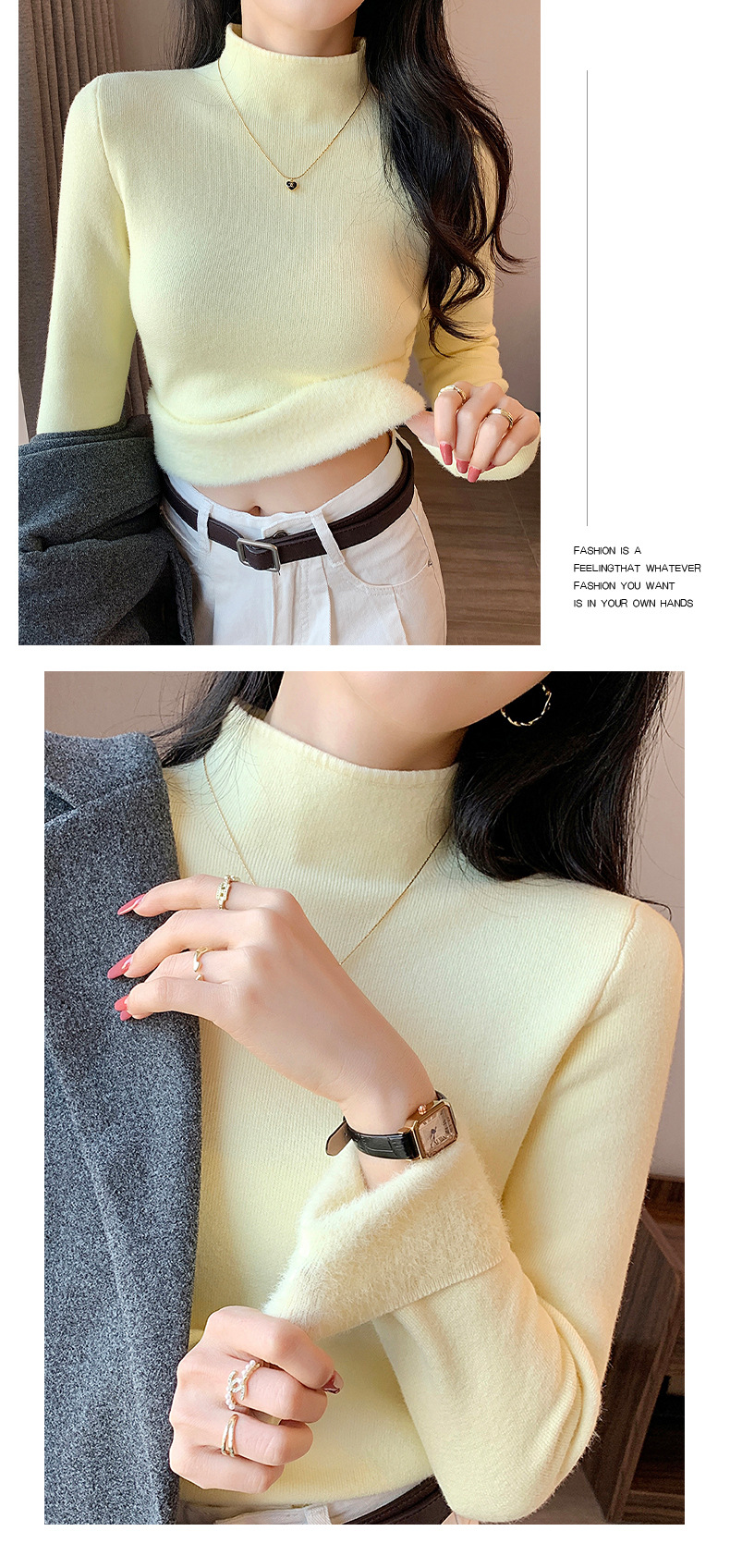 厚手の一体型ミンクベルベットの柔らかいニット素材のレディース冬用セーター、ハーフタートルネック、インナーウェア