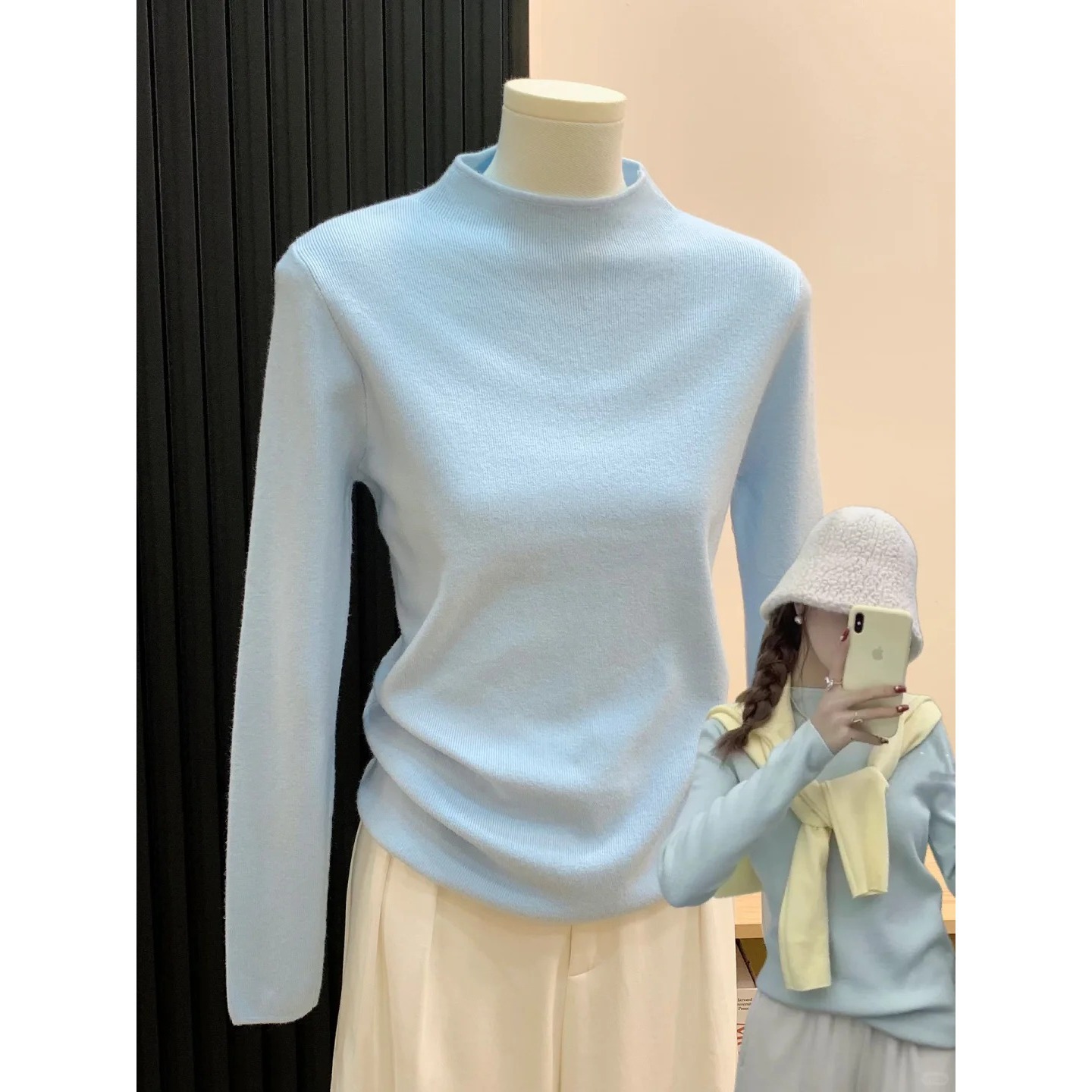 繊細な木耳縁のハーフタートルネックニットインナー、女性用春秋冬新作、スリムフィット、柔らかなセーター