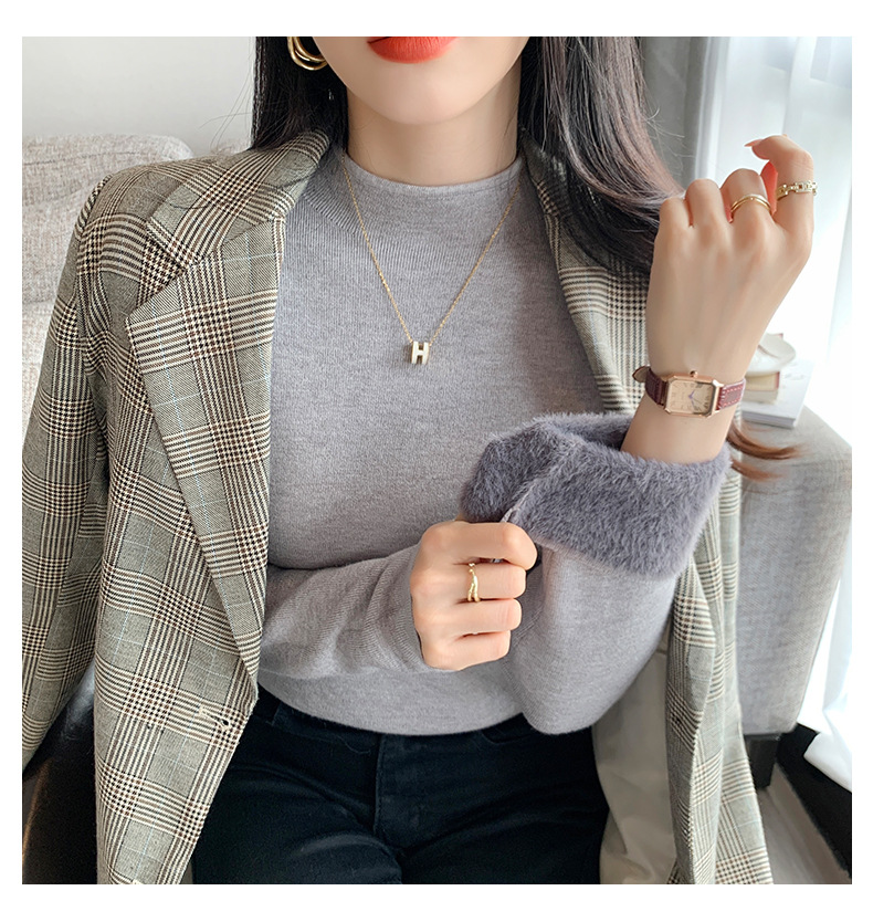 ベルベットが厚くなった小さな立襟の中に上着を着た2024冬の保温一体ベルベットセーターの基礎的なシャツ