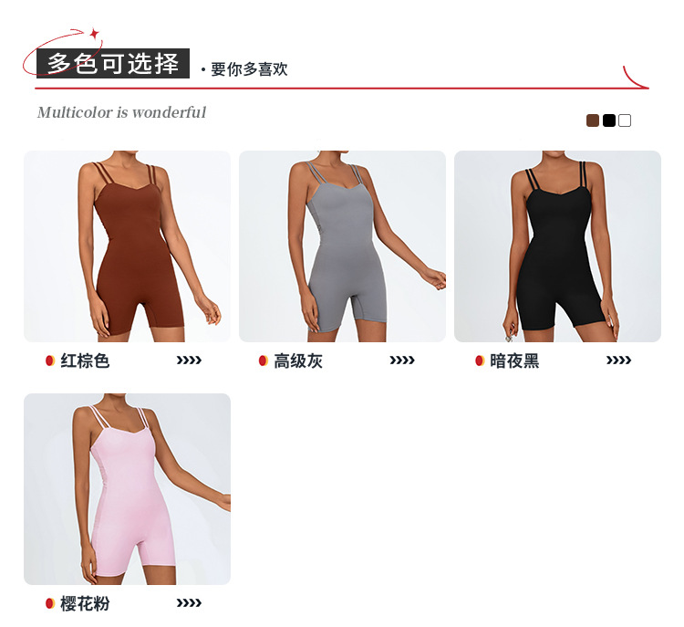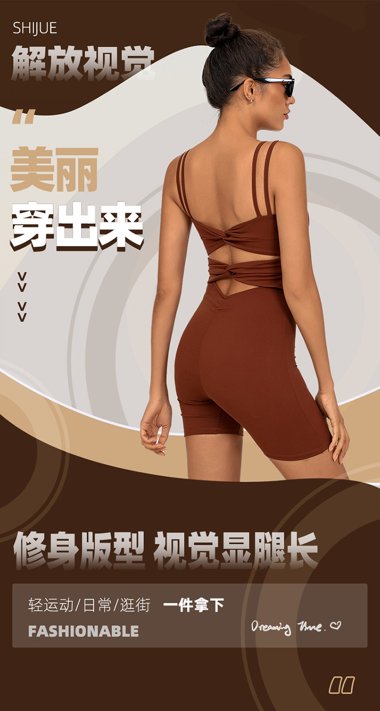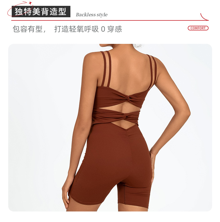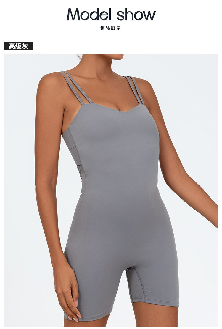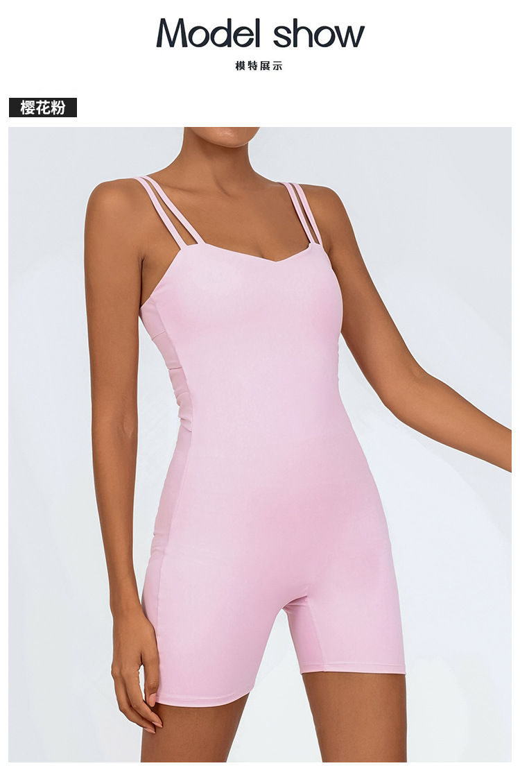 クロスボーダーワンピース ショルダーストラップ付きショートパンツワンピース 後ろがV字型のウエストプリーツヨガワンピース