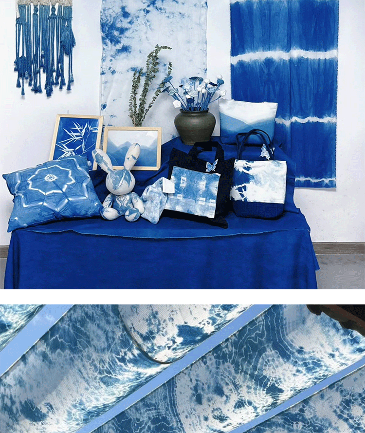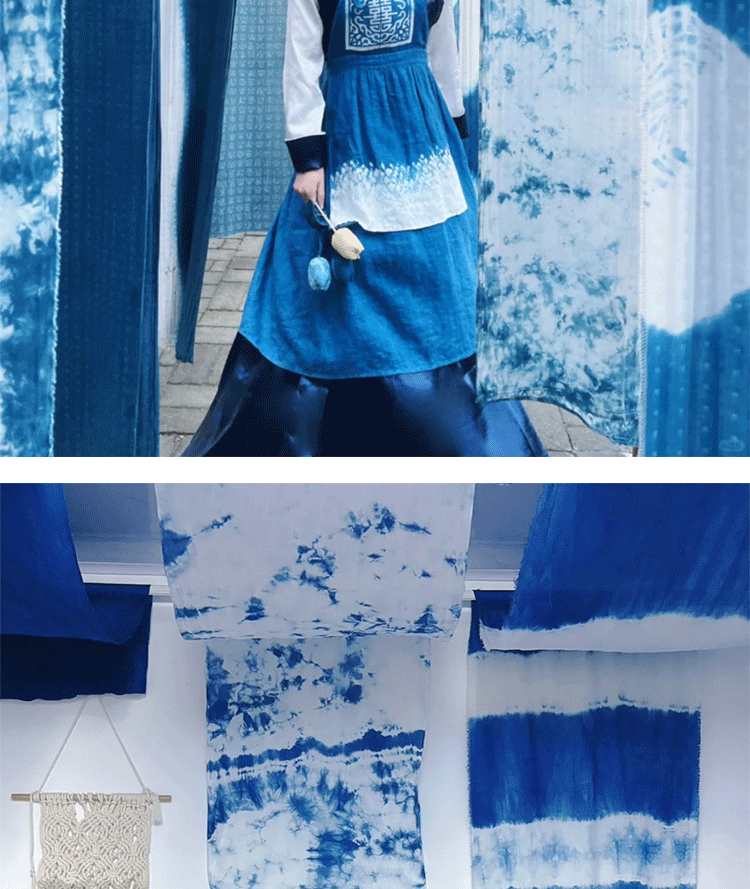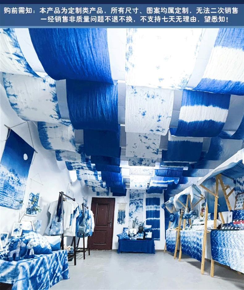 扎染风装饰挂布蓝色染花纹幼儿园环创场景布置民宿餐厅墙面背景布