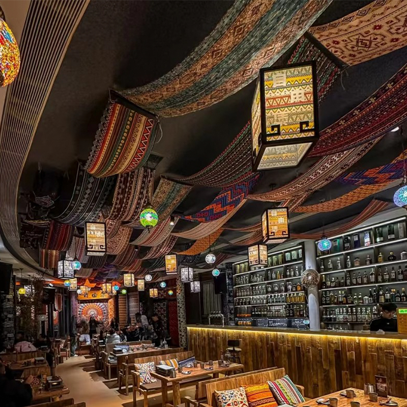 民族风长条酒馆天幕挂布云南民谣酒吧墙面装饰民宿特色墙布背景布