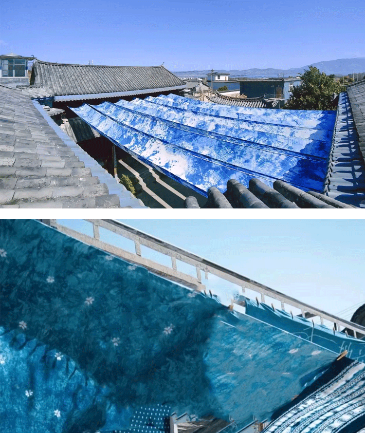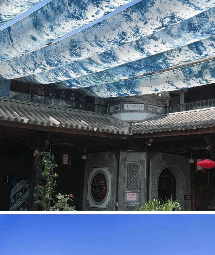 新中式国潮风祥云花纹天幕布吊顶装饰挂布商用中国风天花板遮丑布