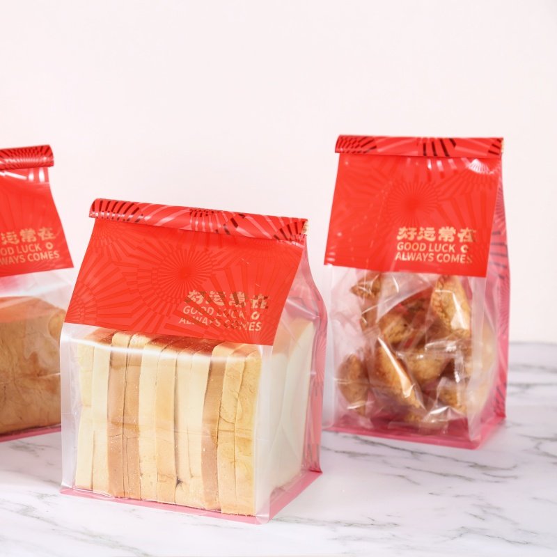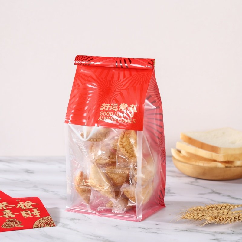【品名】 好运新年点心包装袋中式糕点手工麻薯桃酥面包蛋卷烘焙卷边食品袋