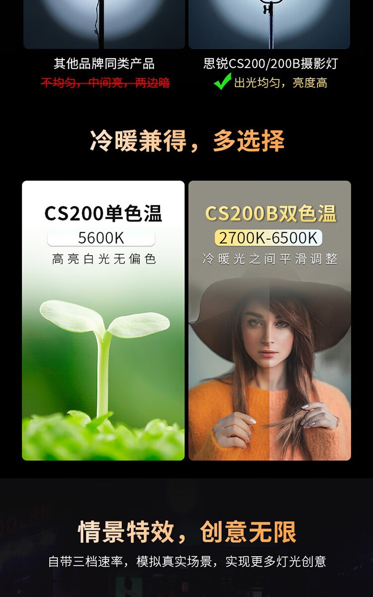 思鋭 (SIRUI)CS200単色温補光灯生中継スタジオビデオ撮影光灯一眼レフカメラ