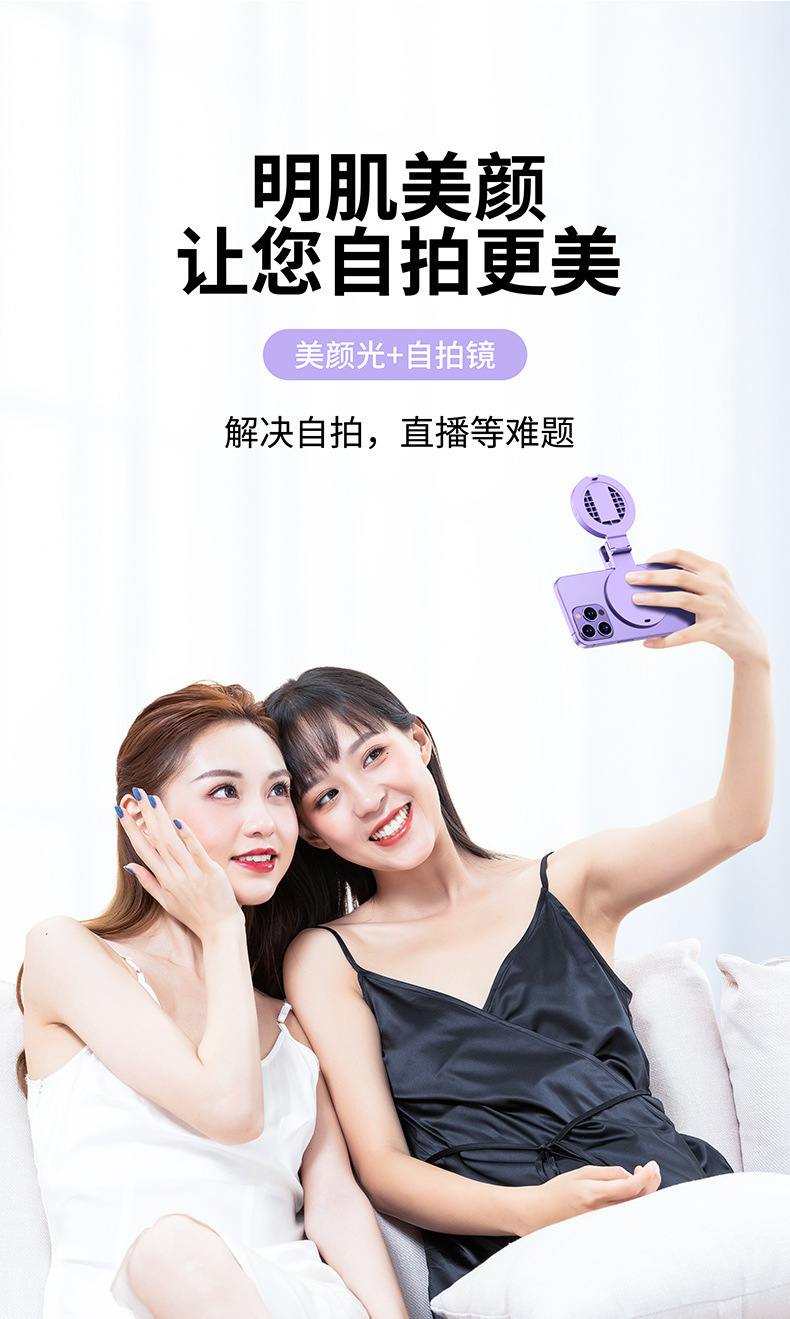 新型スマホ用補助光、配信者向けライブ撮影用、手持ちポケット自撮り鏡、美顔写真撮影、ユニバーサルライブ配信ツール
