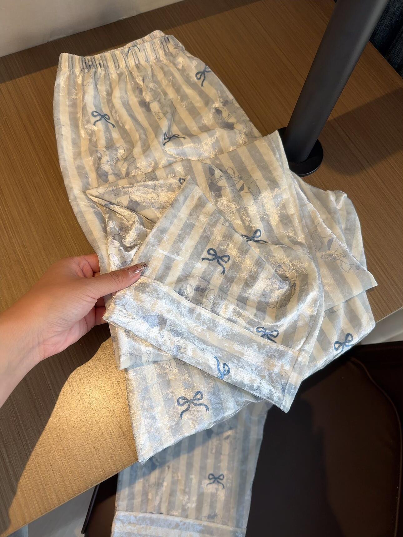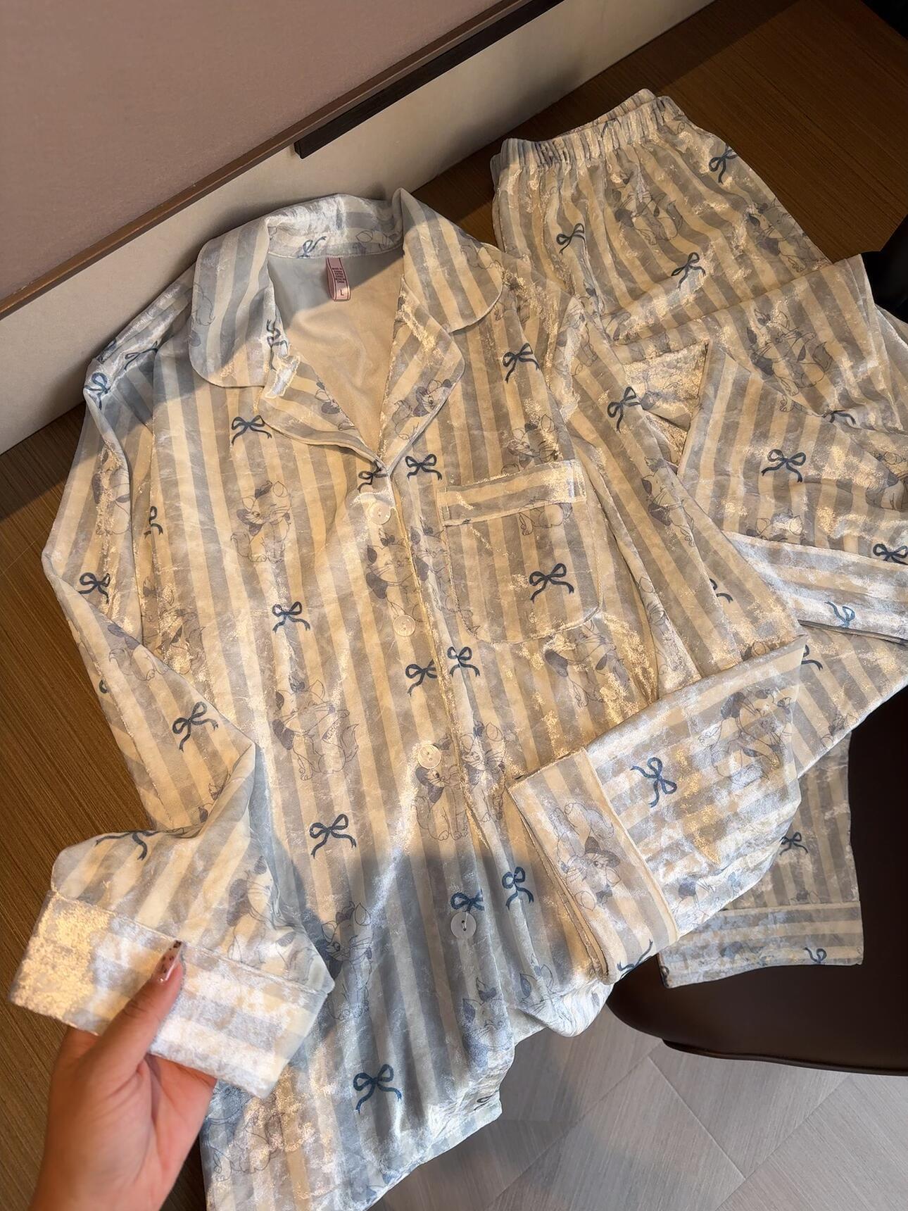 现货】法式小熊金丝绒睡衣女秋冬新款保暖舒适蕾丝花边家居服套装