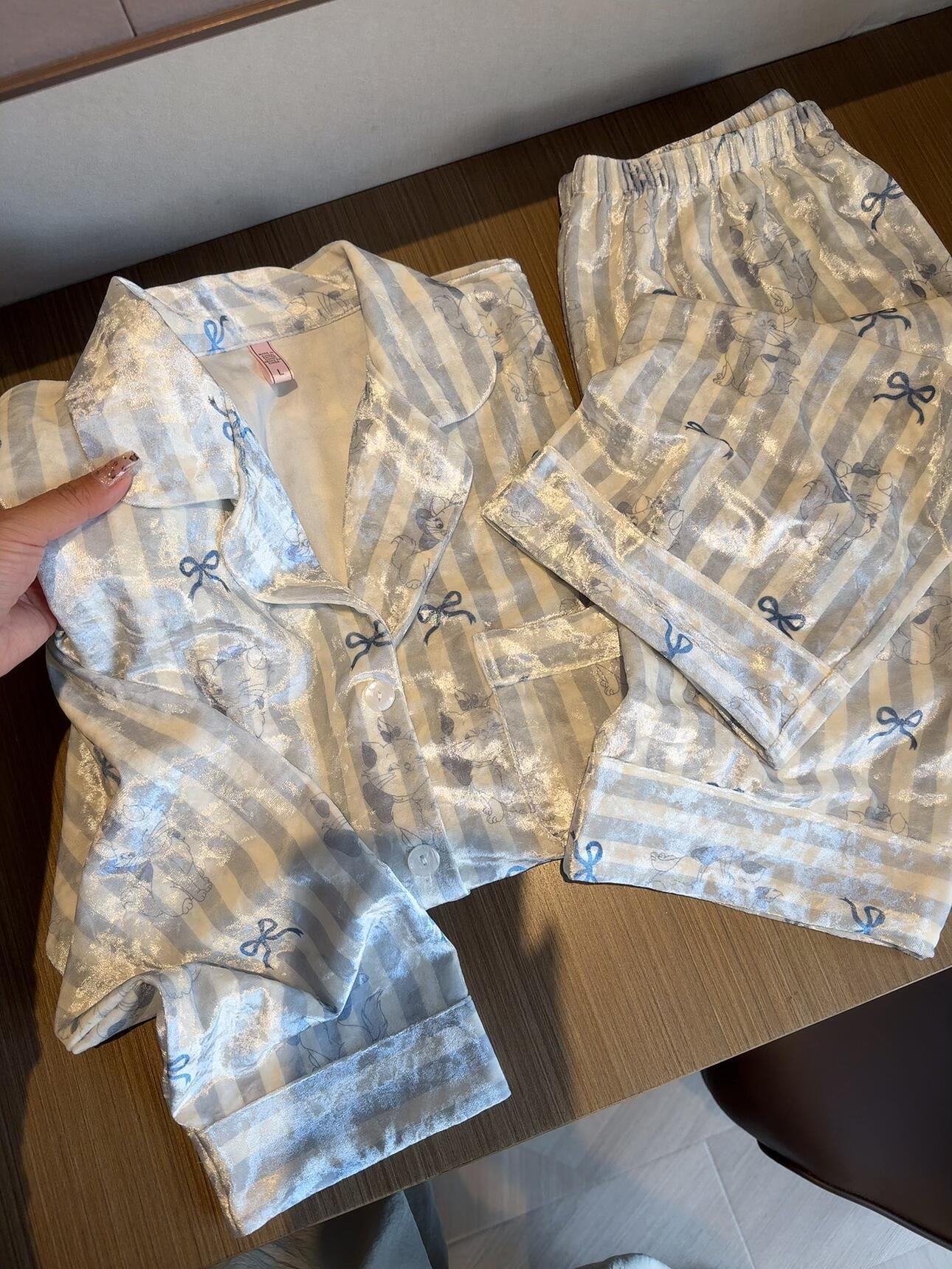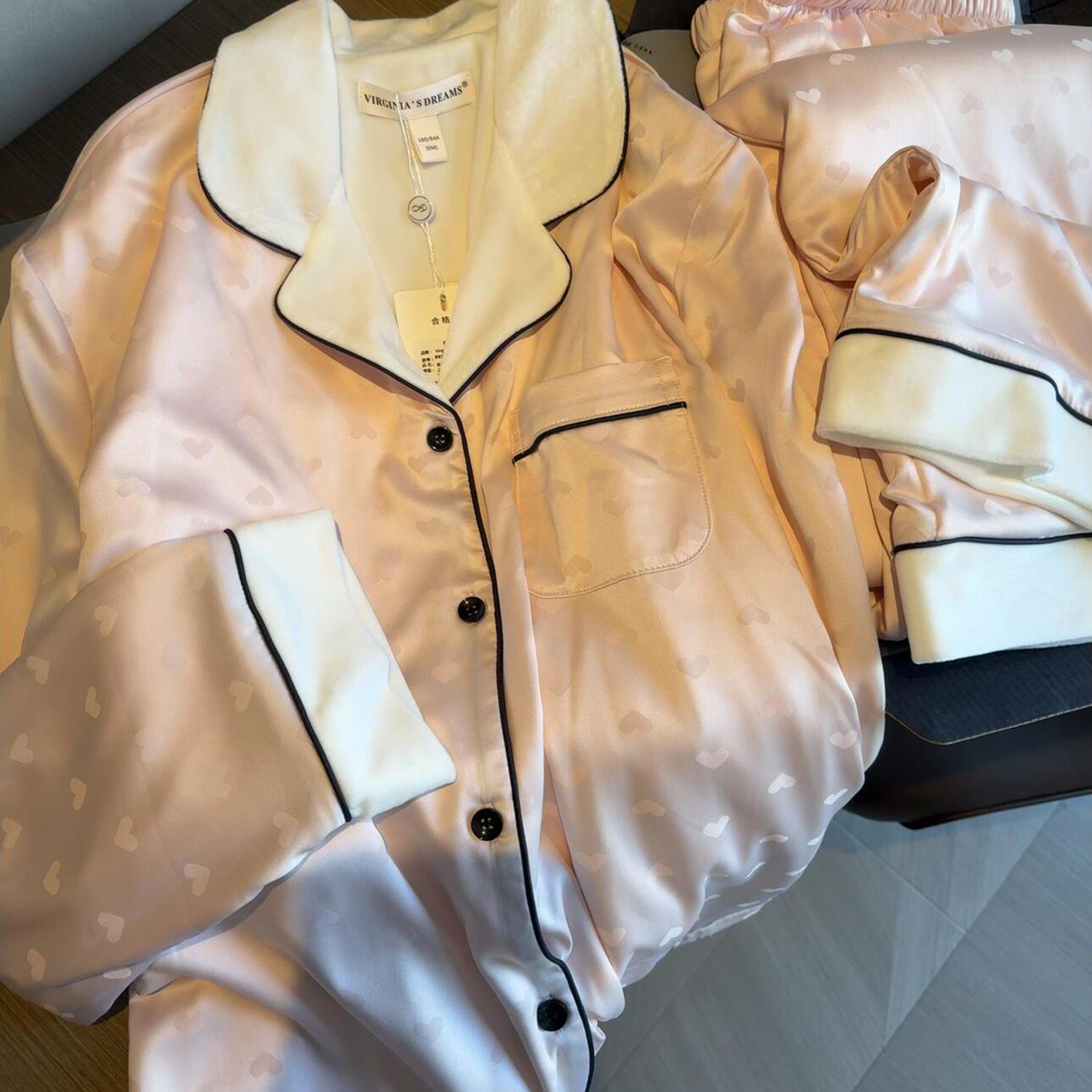【现货】设计冰丝睡衣女早秋新款大码锻面长袖长裤家居服套装ins