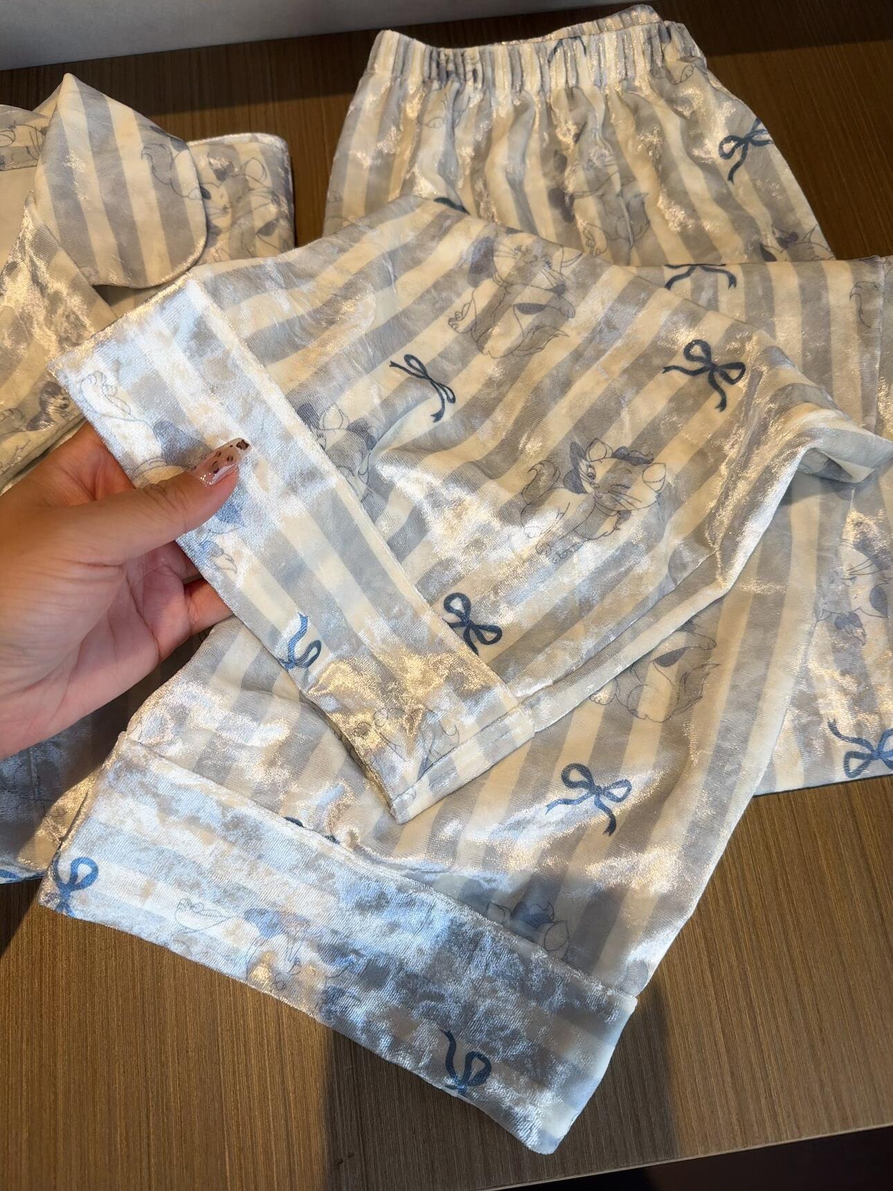 韩版少女金丝绒可爱小猫咪睡衣女秋季2025大码开衫长裤家居服套装