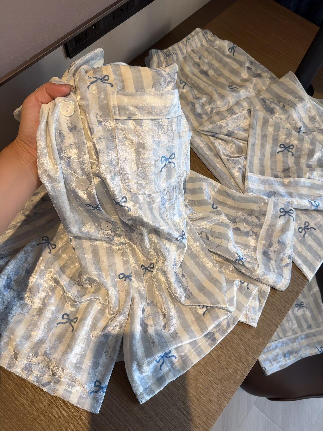 Ins韓系ストライプのパジャマ女性春秋モデル2025の新型の大きいサイズの早春の家庭服セットは外着ができます。