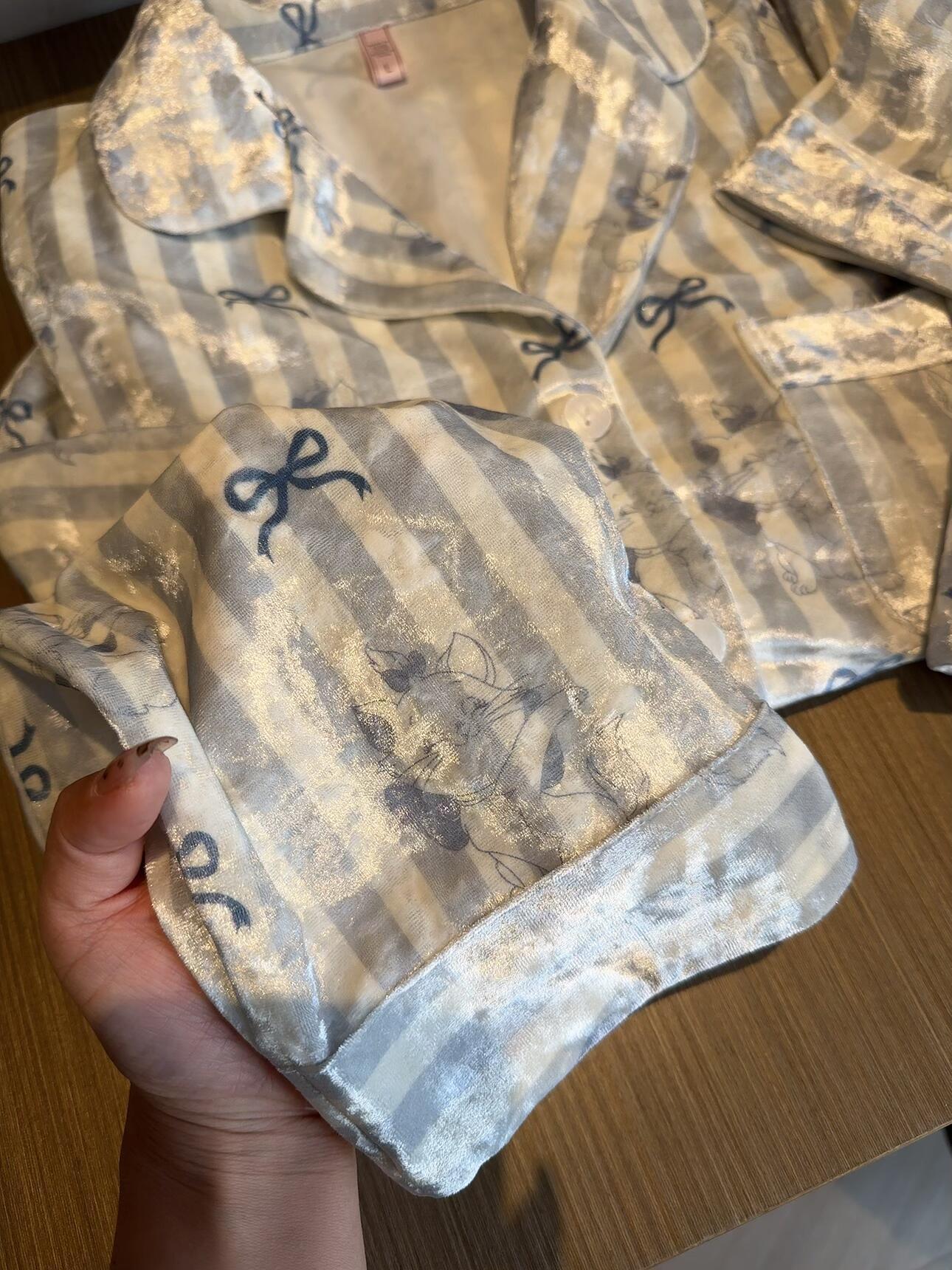 【在庫あり】蝶結びプリントモダールパジャマ レディース 2025年新作 大きいサイズ 快適 長袖 ホームウェアセット