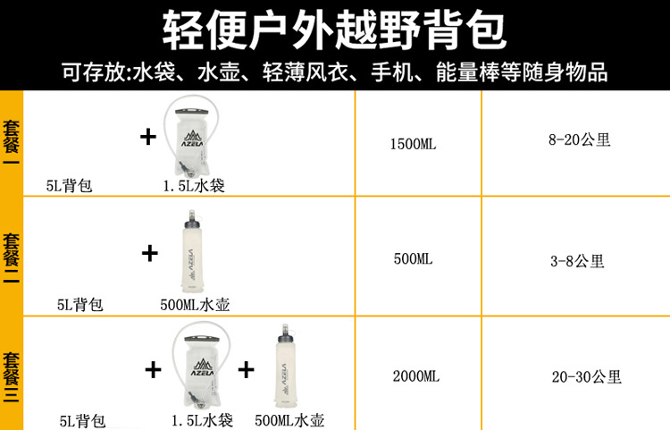 轻量化登山包跨境运动户外骑行包越野跑步背包水袋包男女5L双肩包
