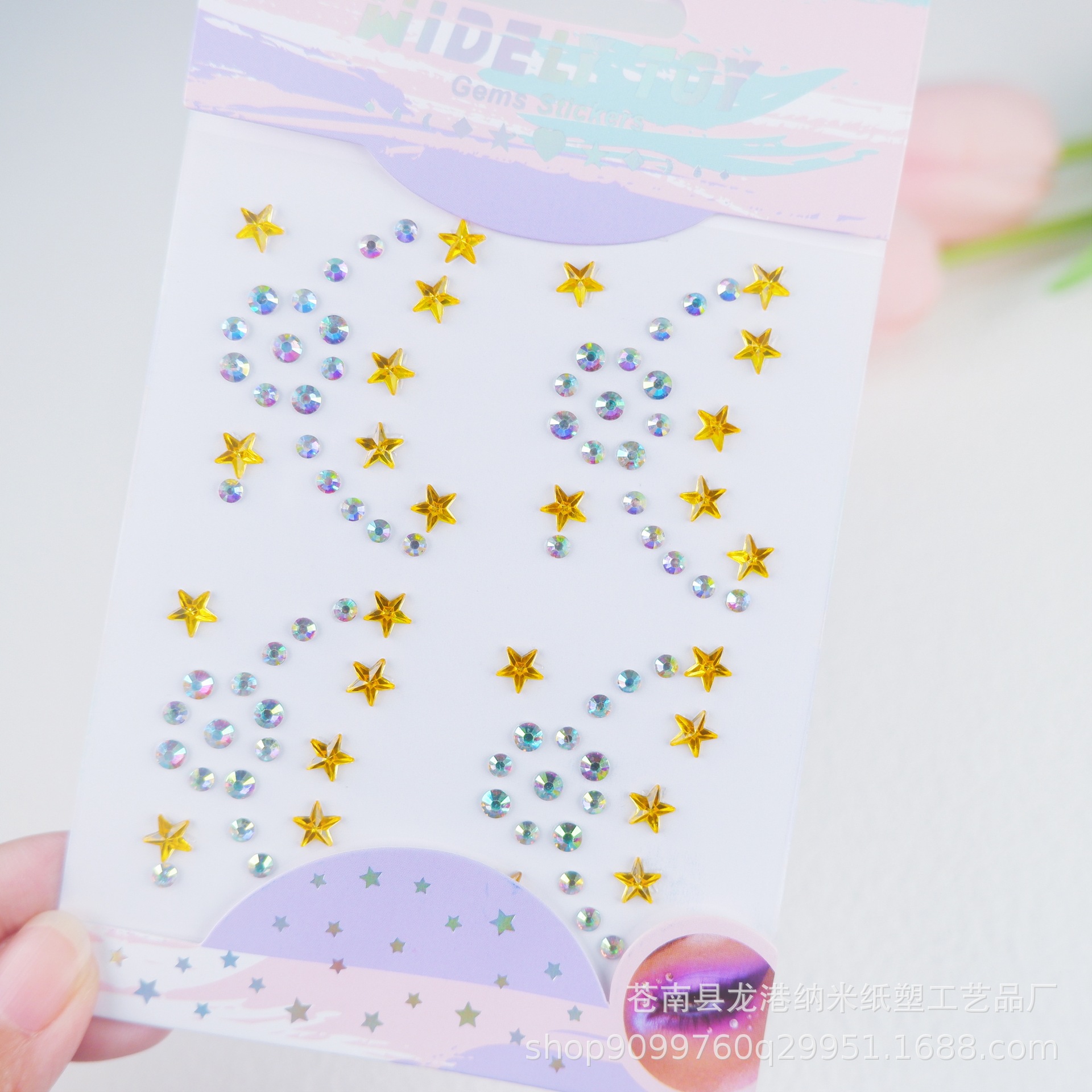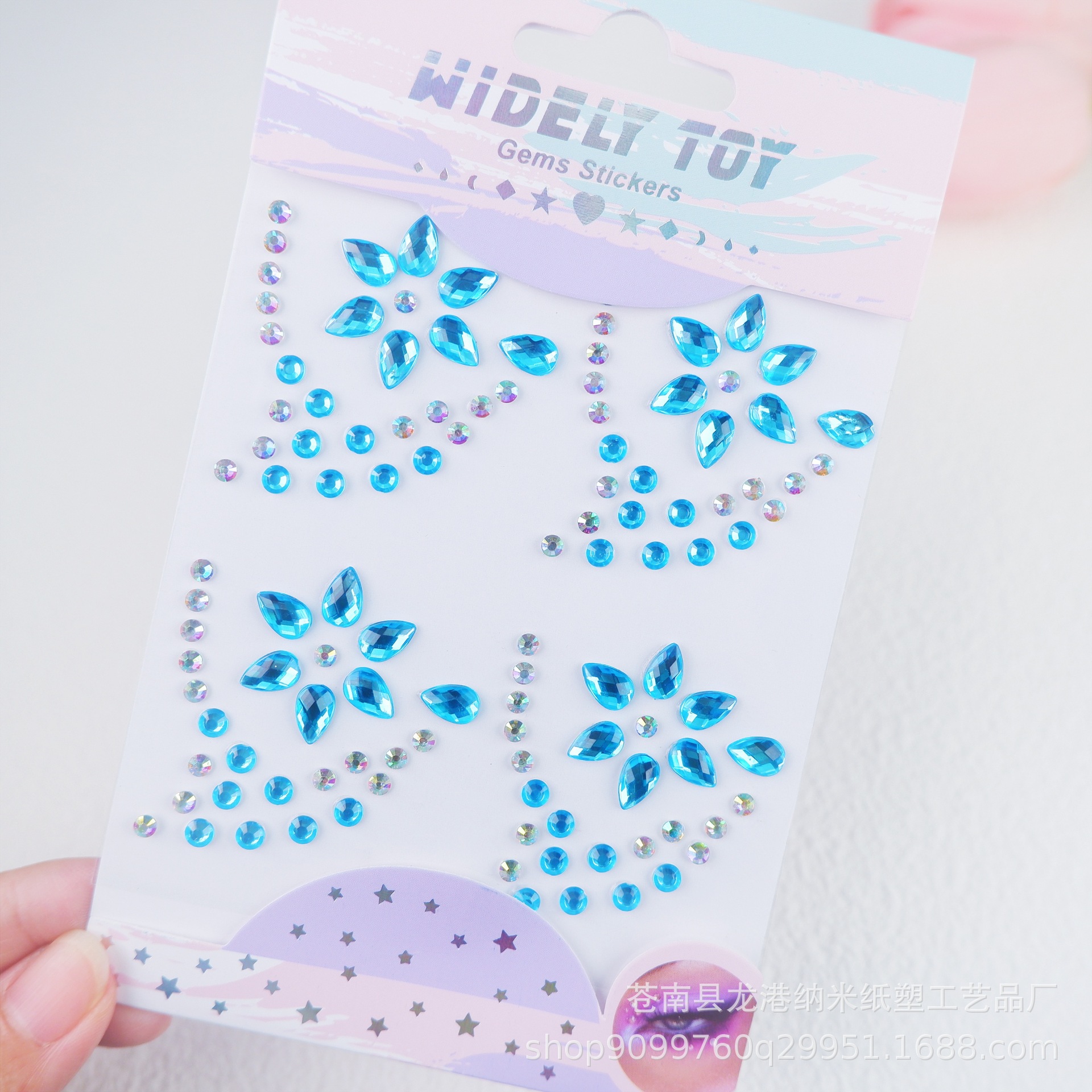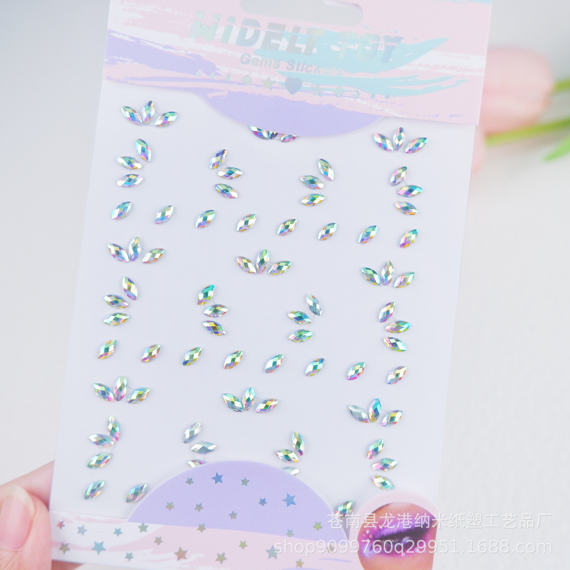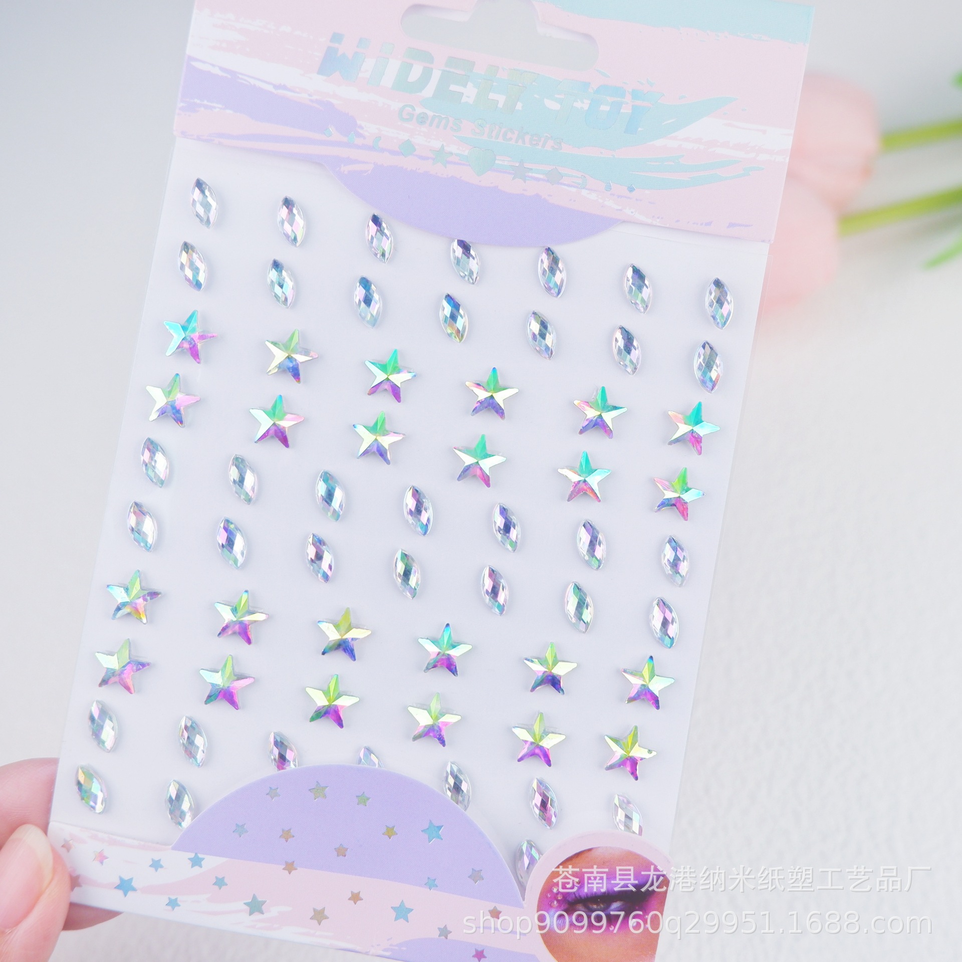 子供の舞台の公演の顔はドリルの目の水晶を貼って化粧の装飾の趣味のカラードリルのアクリルの顔を貼ってフラッシュを貼って貼ります。