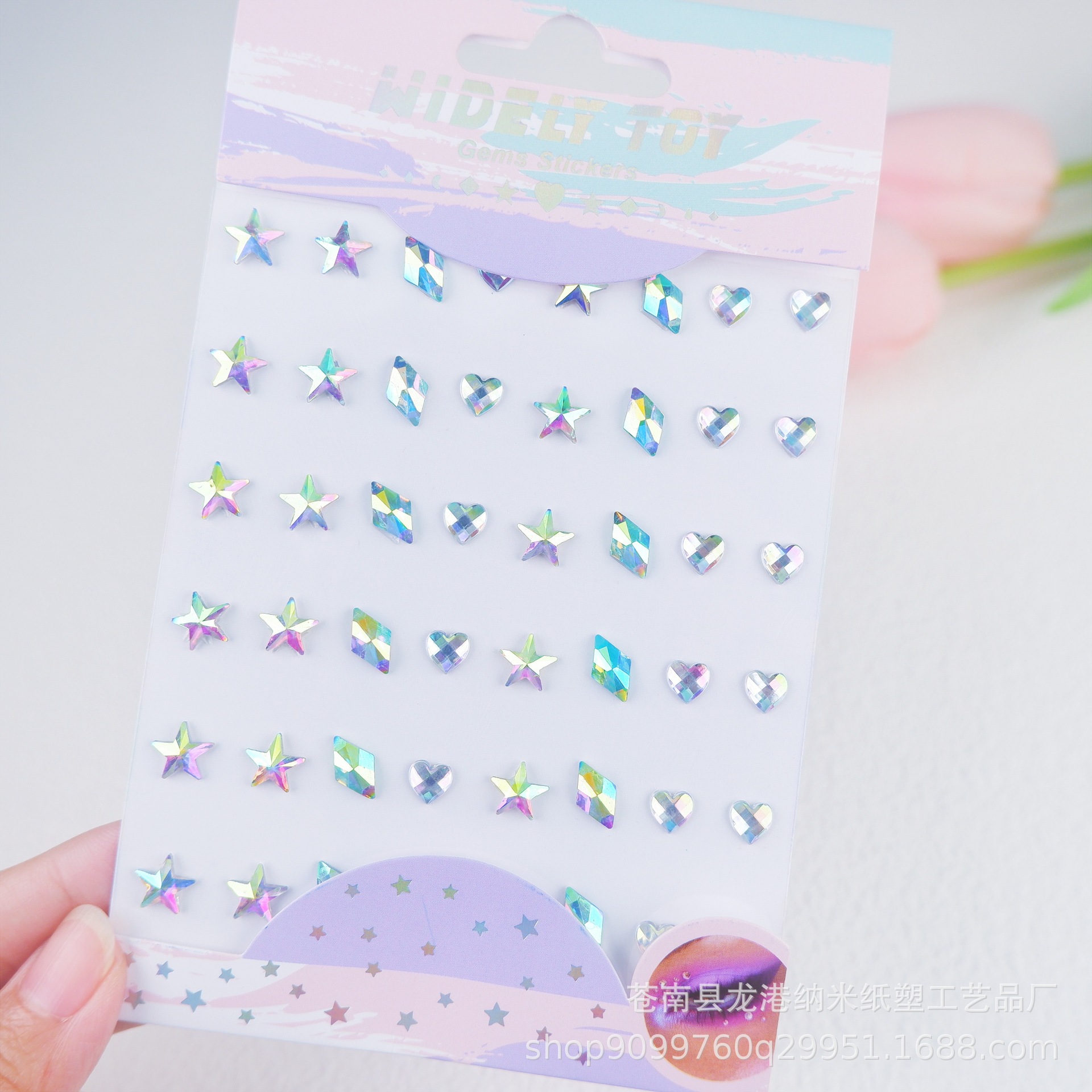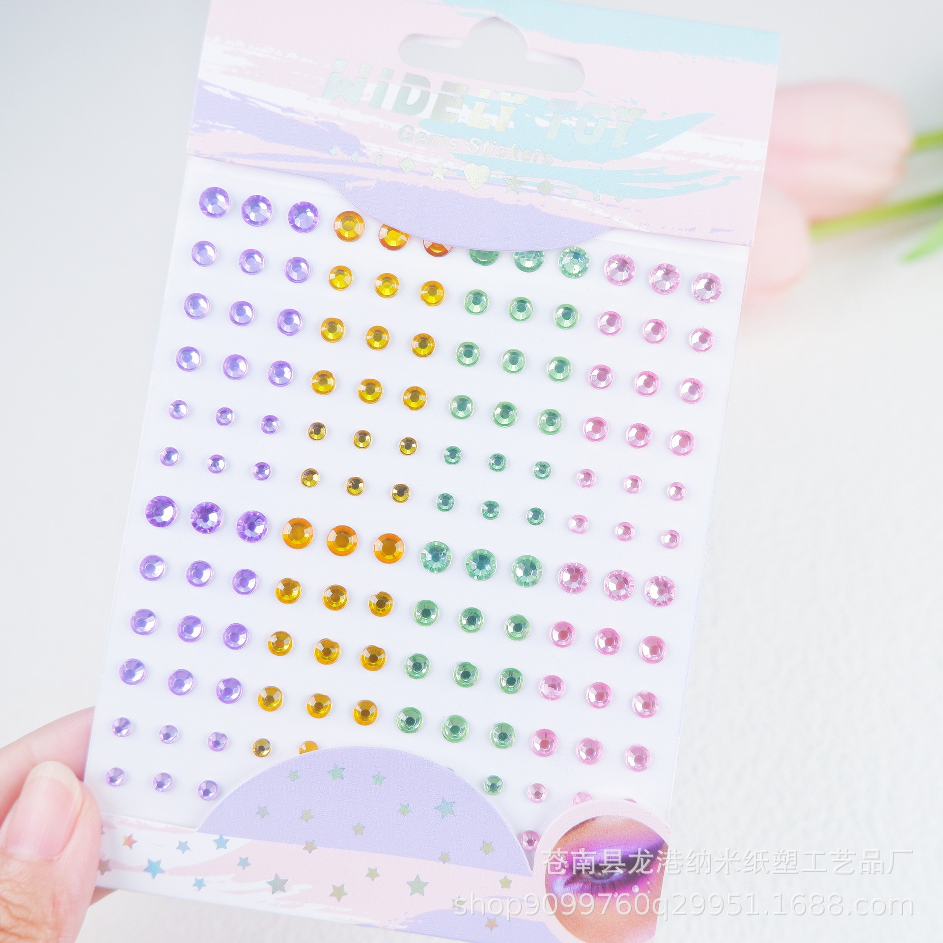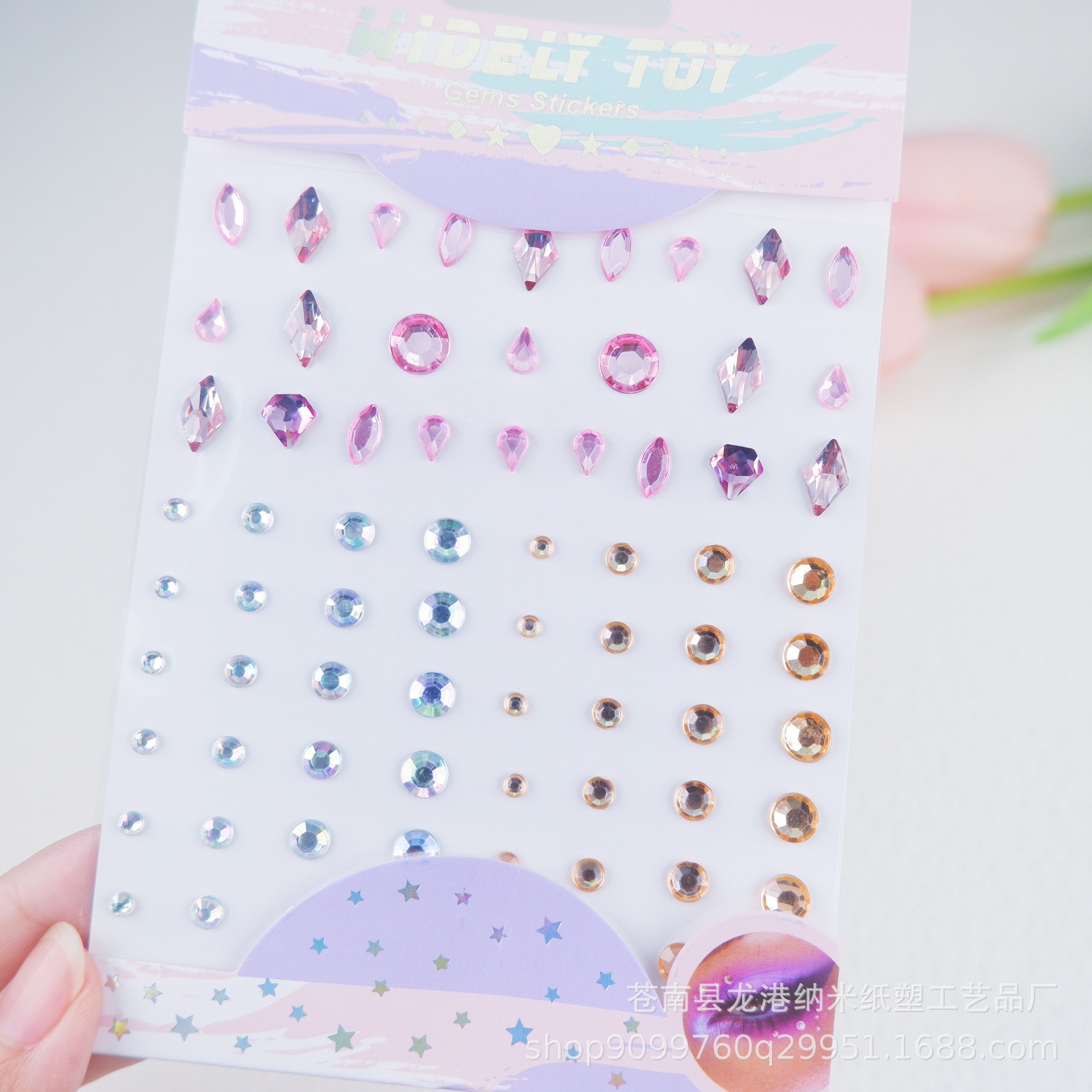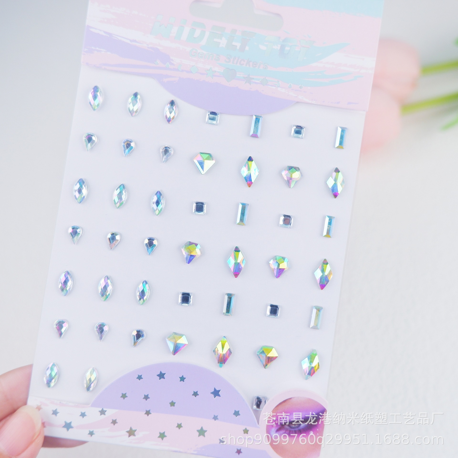 子供の舞台の公演の顔はドリルの目の水晶を貼って化粧の装飾の趣味のカラードリルのアクリルの顔を貼ってフラッシュを貼って貼ります。