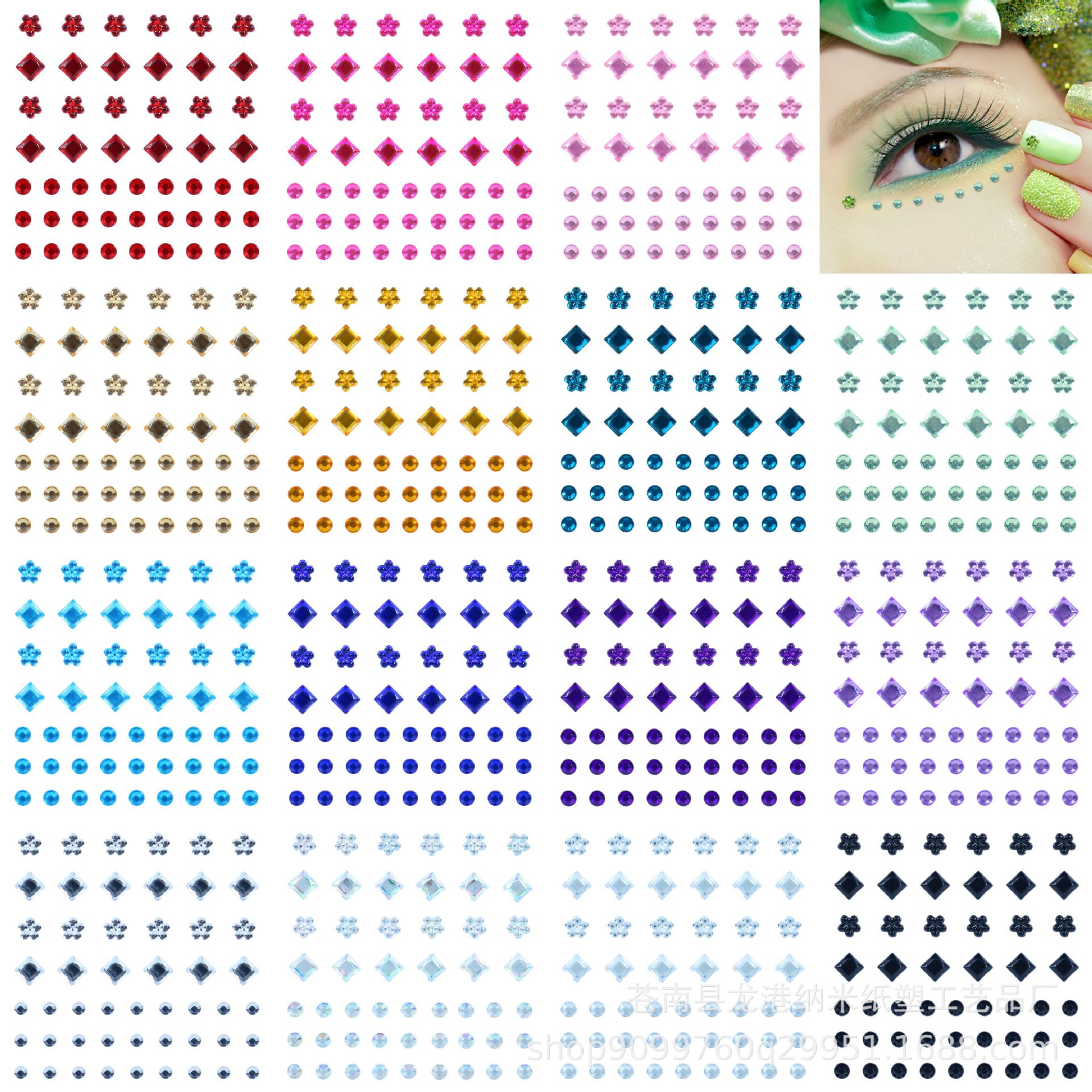 亚克力贴钻多尺寸珍珠眉心脸钻化妆水钻面部装饰泪钻彩色眼妆贴钻