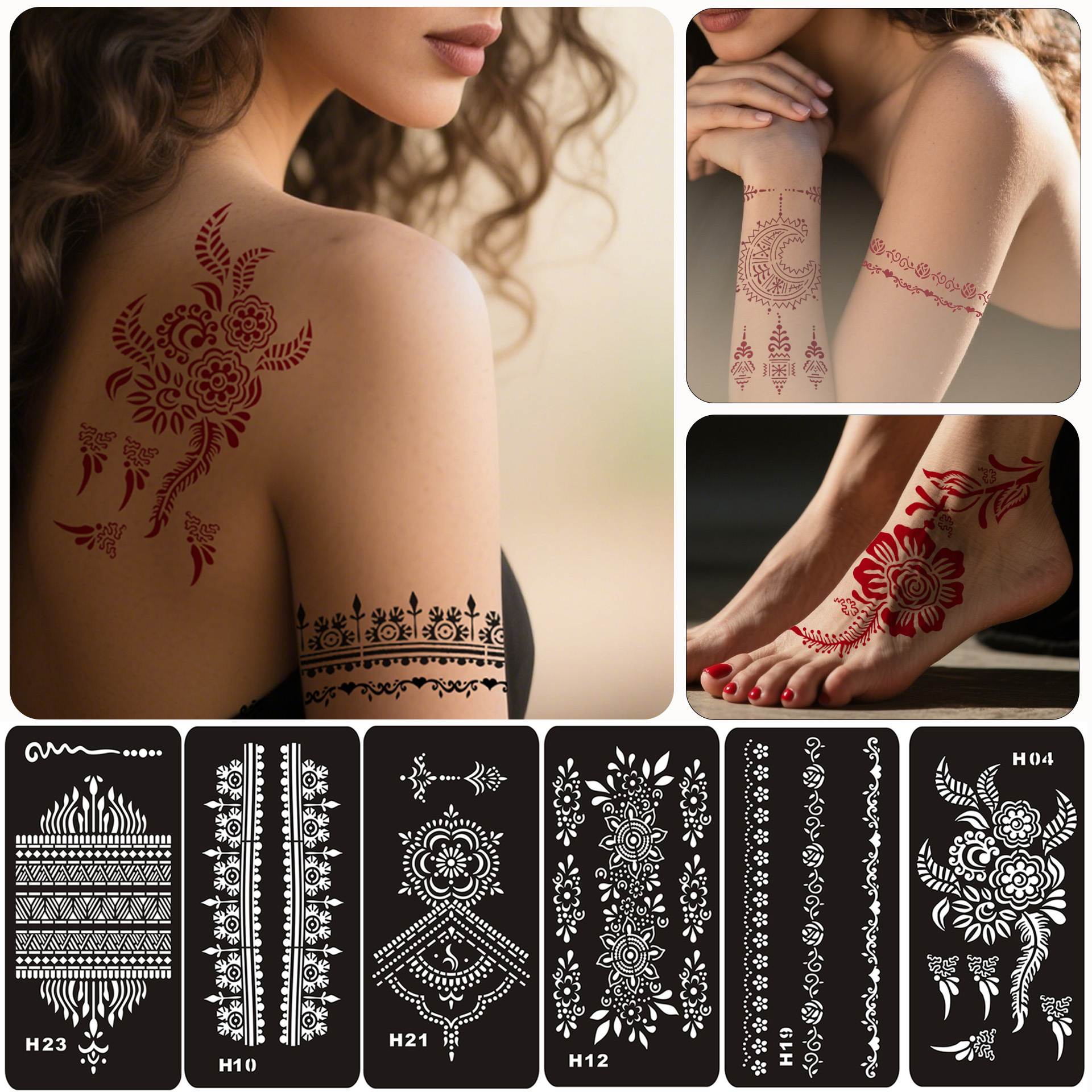 クロスボーダージュースヘナタトゥーステッカーアームスプレー中空テンプレートボディペイントフレッシュミュージックフェスティバルパーティーステッカー