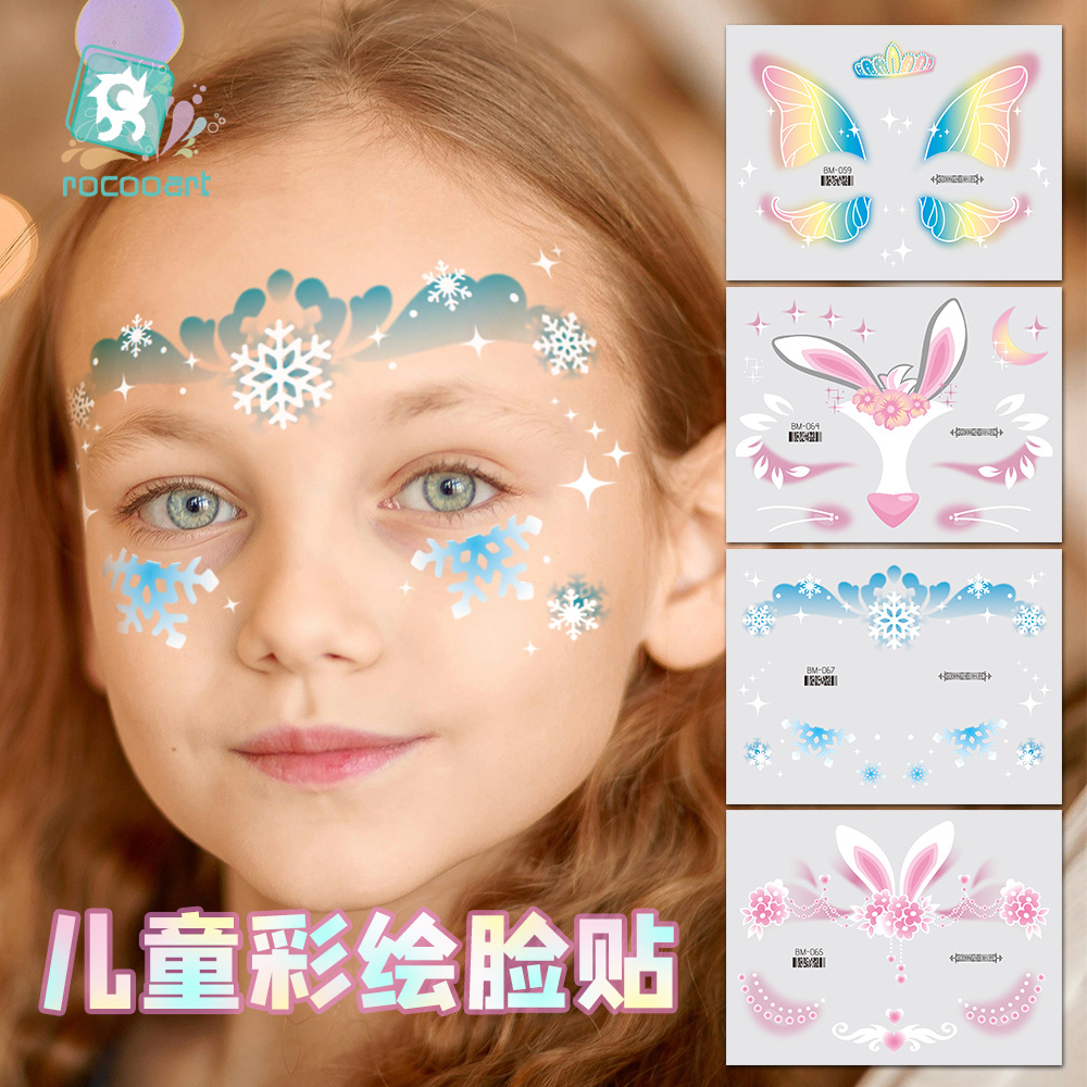 国境を越えた卸売防水子供用フェイスペイントステッカーシリーズ子供用フェイスステッカー子供の日白インクタトゥーステッカー