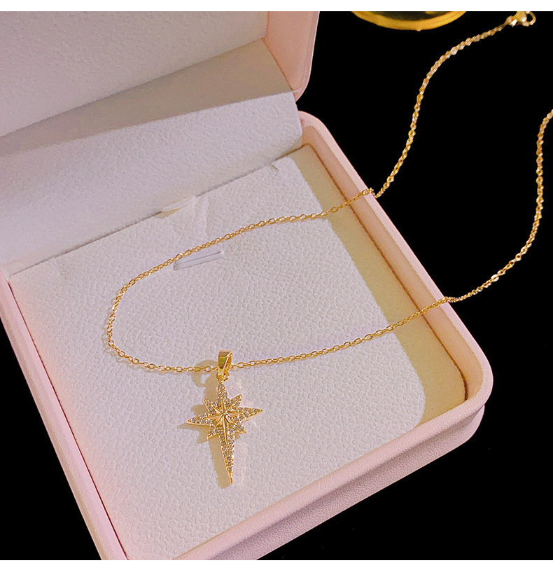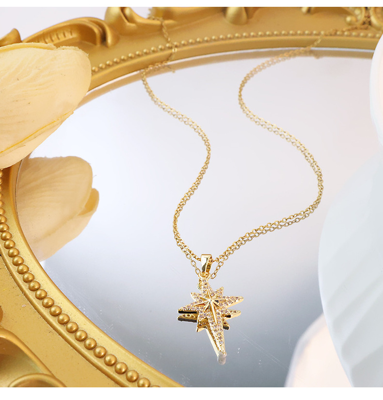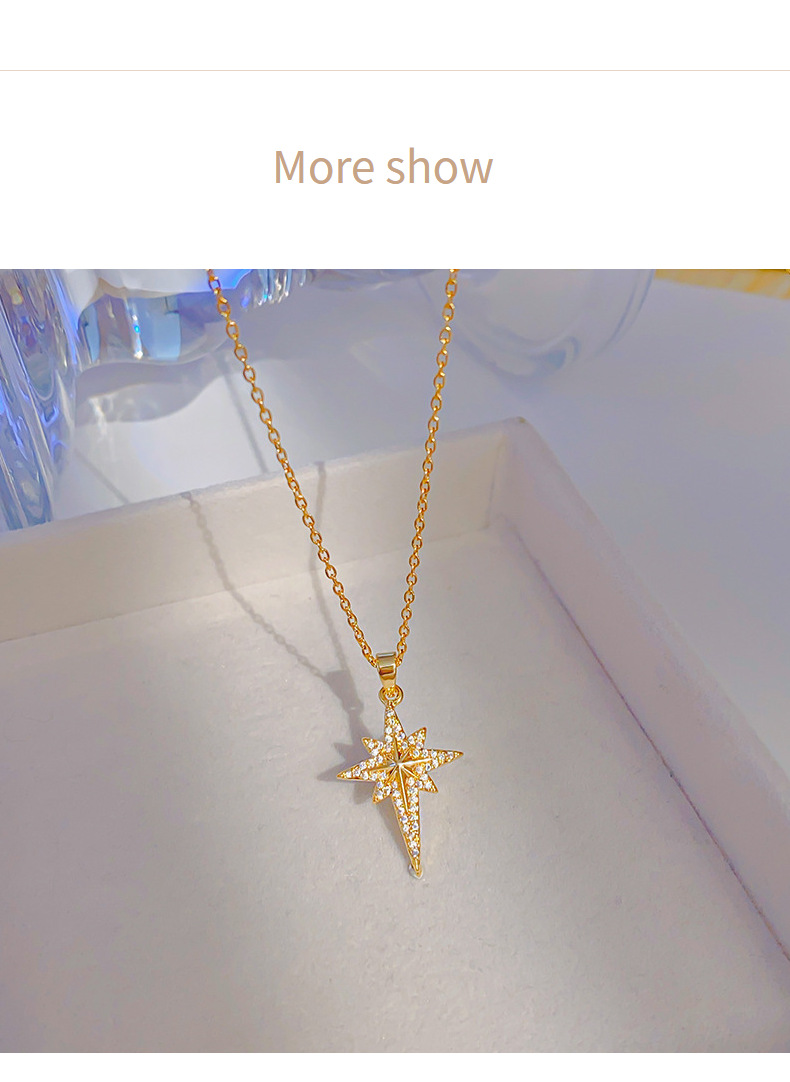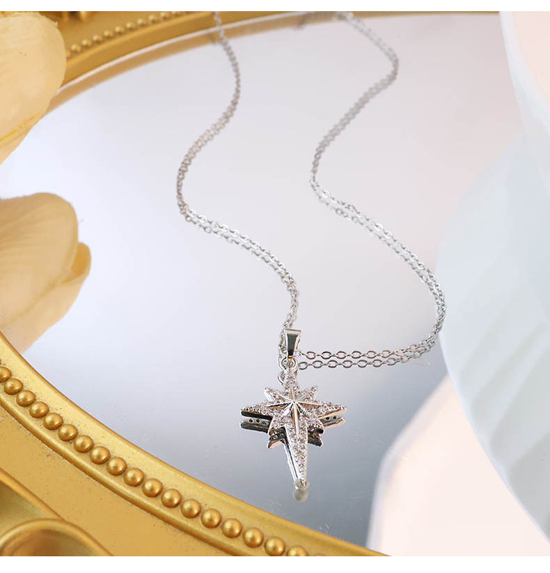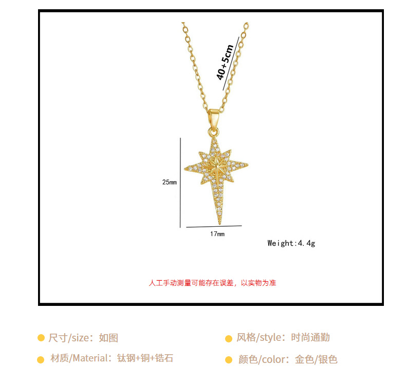 欧米の気質はジルコン八芒星ペンダントチタン鋼のネックレスをはめ込んでいます。