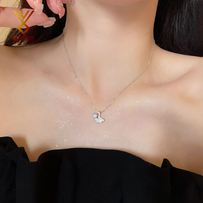 镶钻银杏叶项链女ins轻奢小众设计高级感锆石吊坠锁骨链百搭颈饰