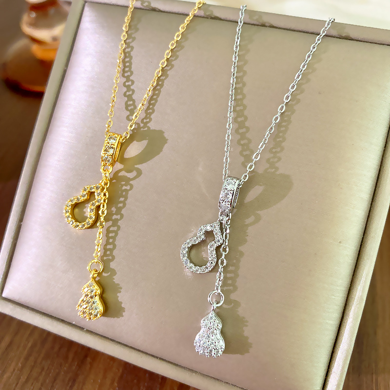 钛钢闪亮满钻流苏葫芦项链女镶嵌锆石高品质百搭锁骨链跨境热销品