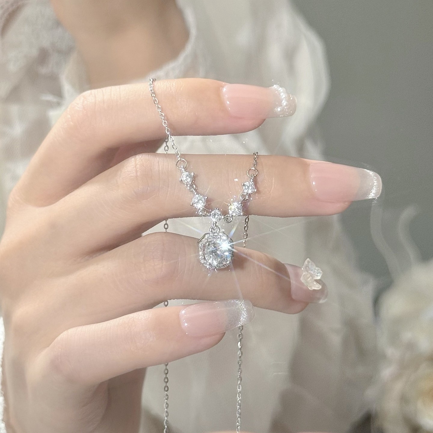 爆闪星光方糖项链女生甜美轻奢小众高级感设计时尚百搭精致锁骨链