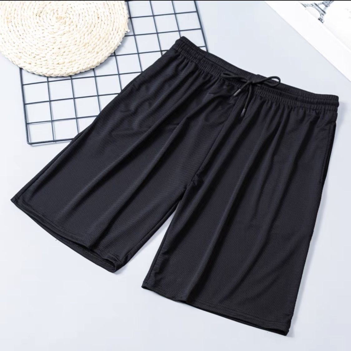 夏はゆったり、快適、通気性、涼しさ、5点ストレッチショーツ、薄手のメンズシンプルスポーツアイスシルク無地ショーツ