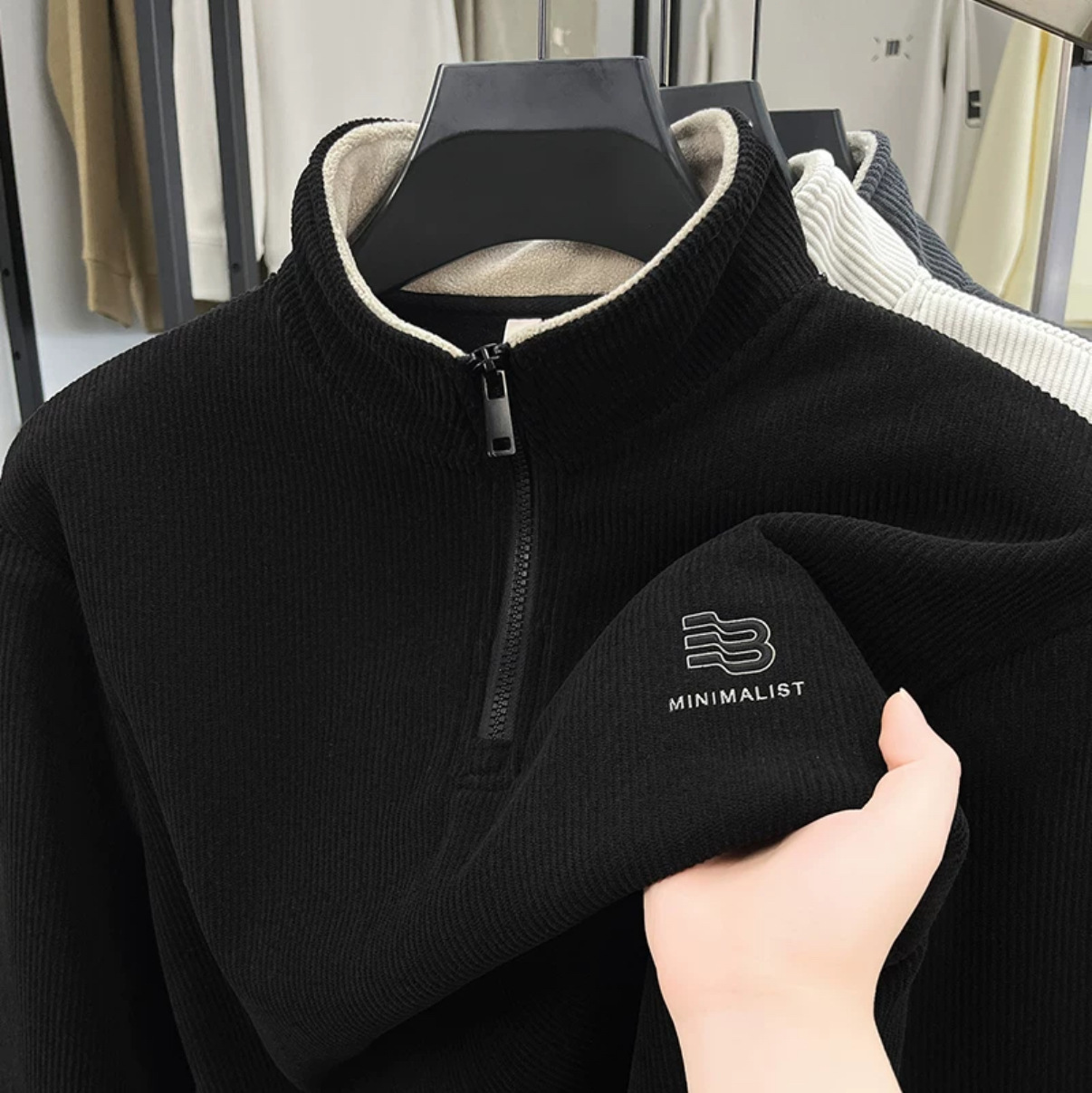 秋冬の重ポンドのパーカー男性のアメリカのレトロな長袖poloシャツのゆったりした半ファスナーの立襟の上着のファッションカード