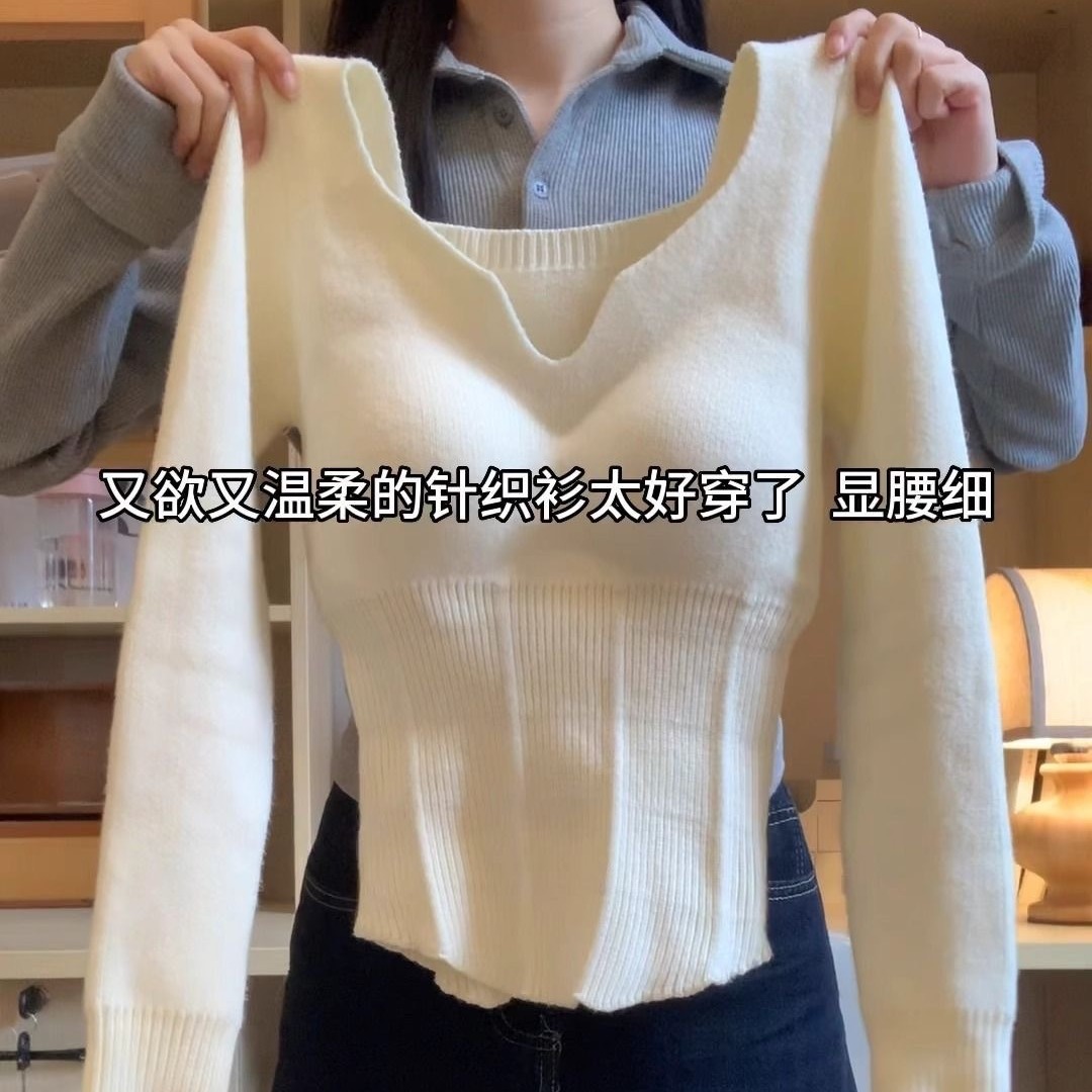 純欲風の大衆デザイン感の底のシャツの女性の秋冬の新型の修身はやせている長袖のニットの胸のパッドの上着を現します。