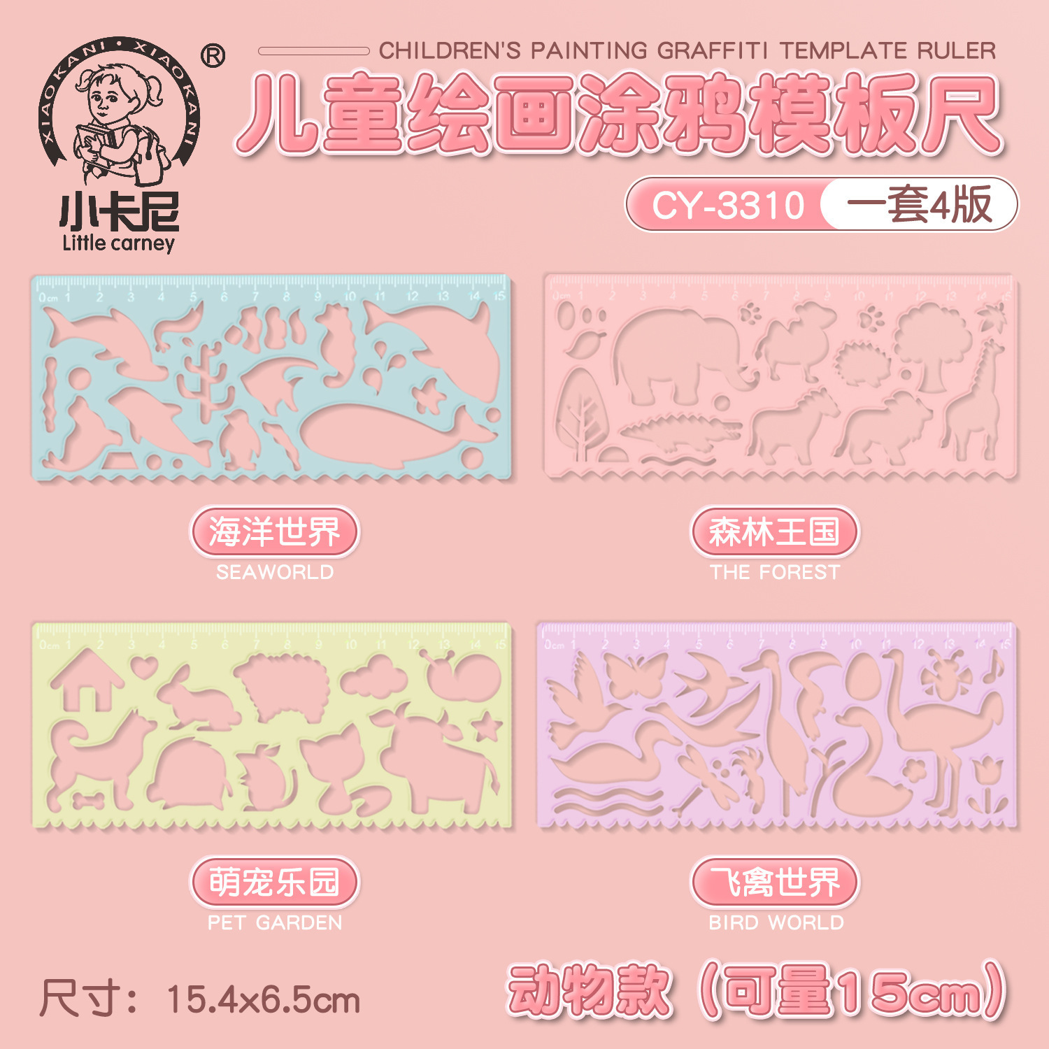 小卡尼製図尺幾何学テンプレート物差し動物の小中学生が絵を描くモデル定規の手はセットの定規を書き写します。