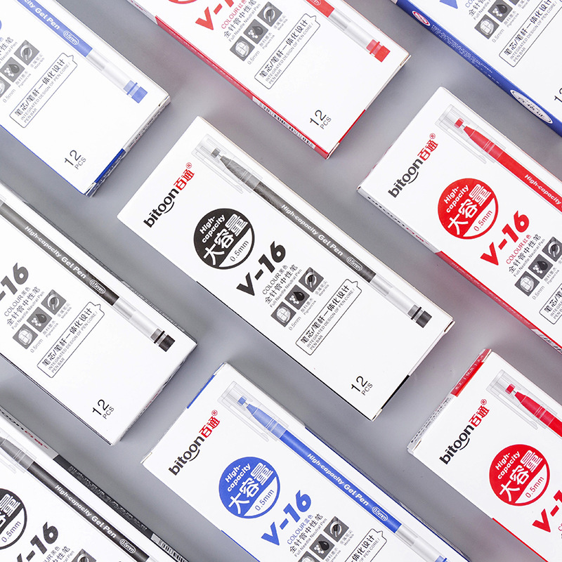 百通v16大容量中性ペンシンプルファッション使い捨てペン交換不可芯0.5全針管学生ペン