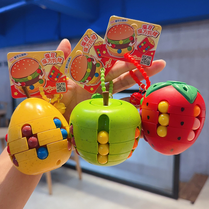 2025年新品儿童益智玩具礼品苹果草莓魔豆指尖陀螺魔方钥匙扣挂件
