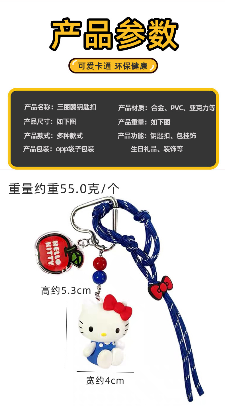 2025新型かわいい少女心正規版ハローキティ凱蒂猫数珠キーホルダー女性かわいいペンダント