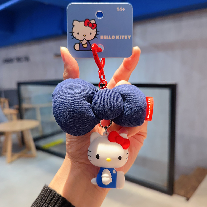 2026新品可爱萌趣正版凯蒂猫HelloKitty牛仔蝴蝶结钥匙扣书包挂饰