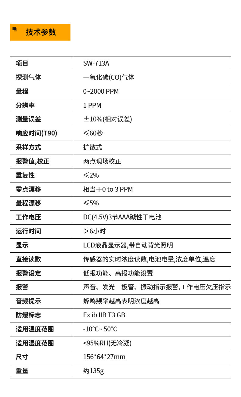 仕様 SW-713A 一酸化炭素検知器の公式規格,SW-713A 一酸化炭素検知器 公式規格+充電セット