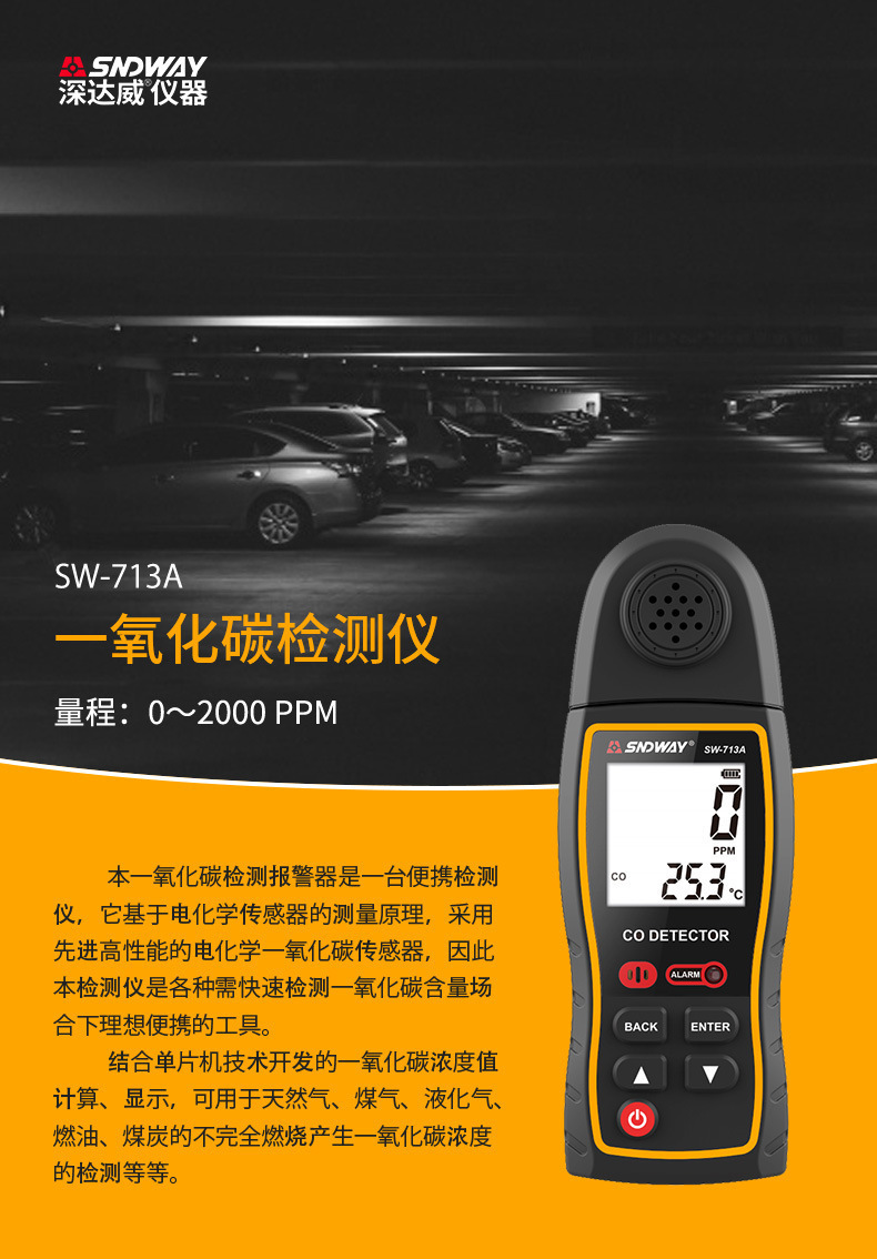 深達威SW-713A携帯型一酸化炭素計排気ガス燃焼排出濃度測定器CO計