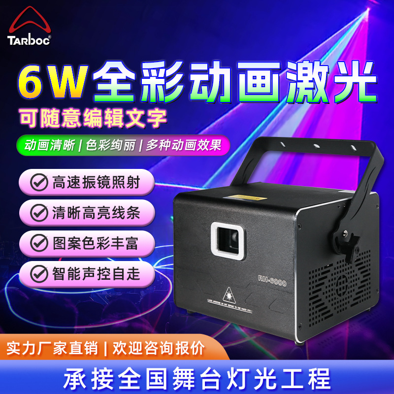 6 ワットフルカラーアニメーションレーザーライトバー結婚式宴会ホールレーザーライトステージパフォーマンス時空トンネルレーザーライト