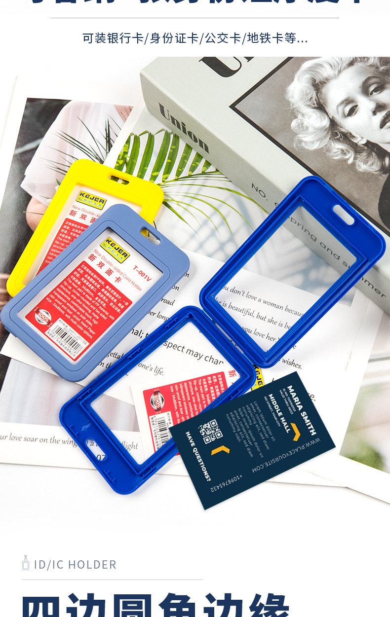 クロスボーダー専用両面透明PPカラー証明書カードカバーファッション硬質プラスチックID胸カードケース現物直供