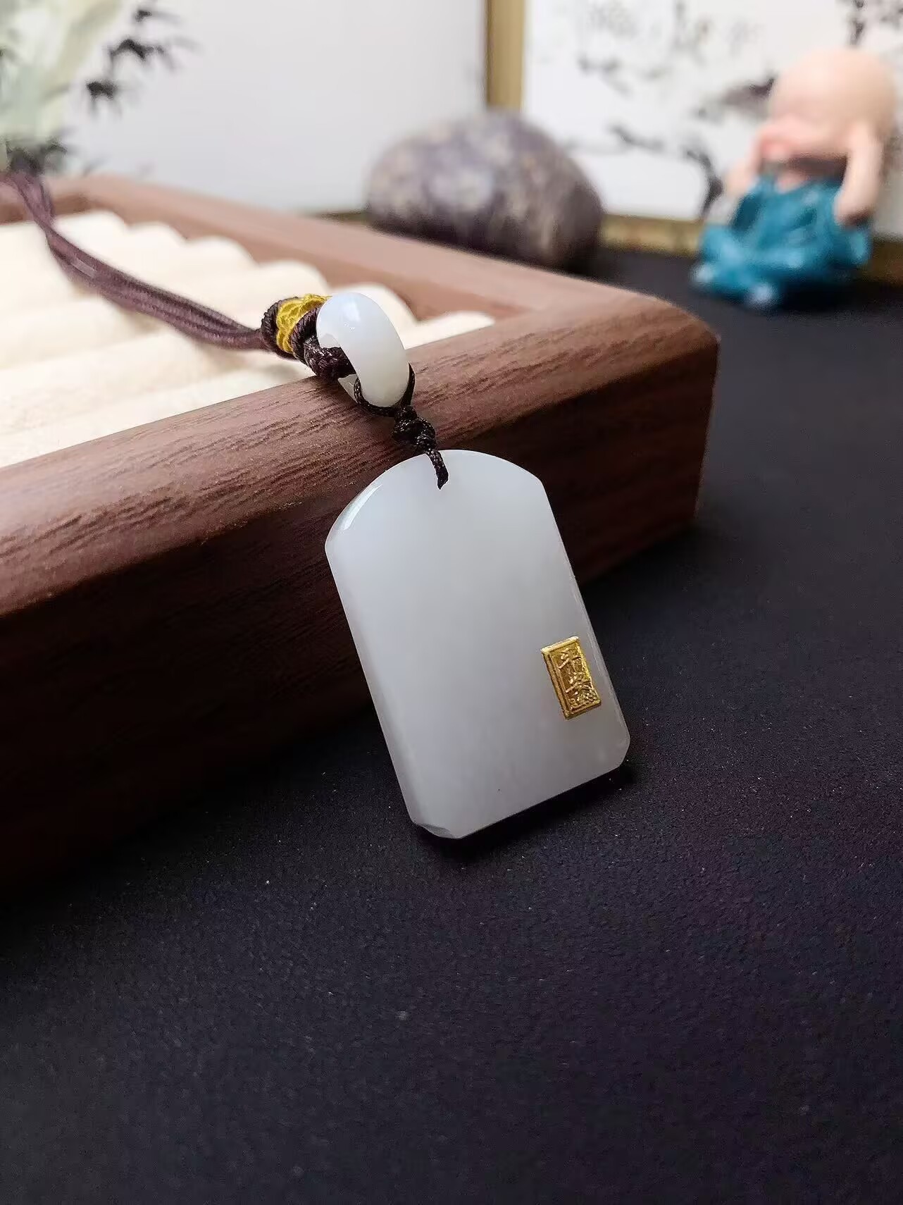 古法s925銀は和田玉如意をはめ込んで、無事にペンダントを掛けます。