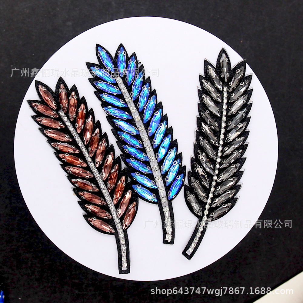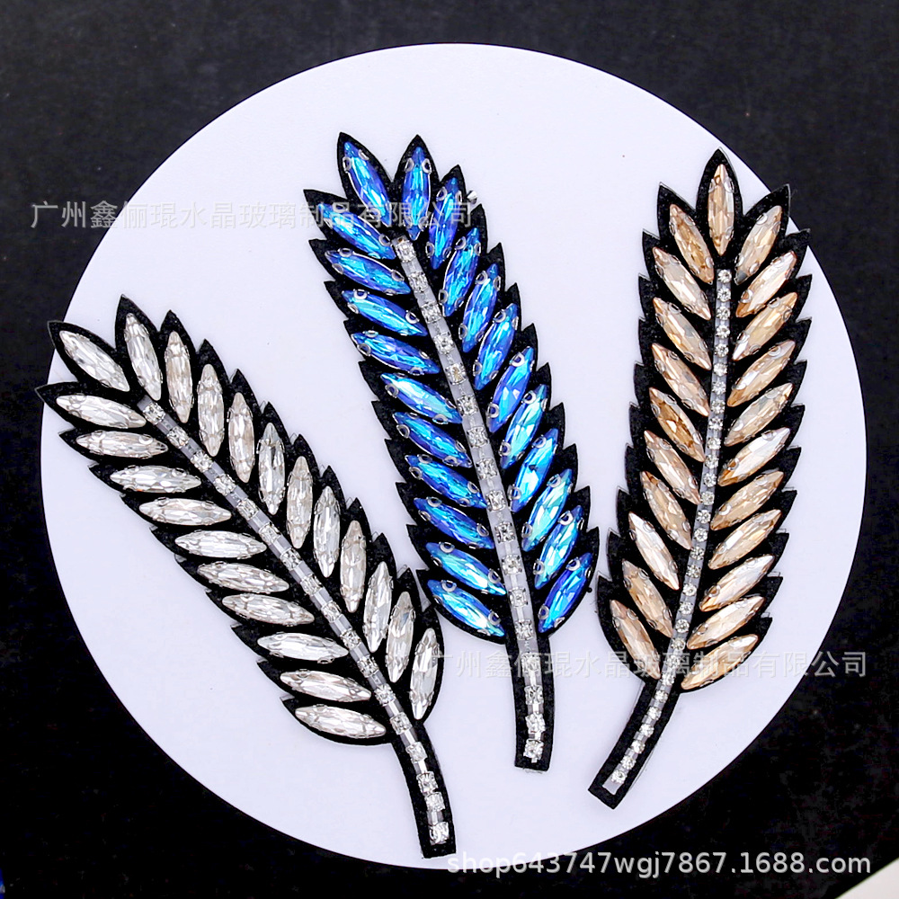 高級麦穂絨毯の手縫いの花の粘爪ドリルのガラスのアップリケの服の胸の花の包みの靴の材料の部品の卸売り