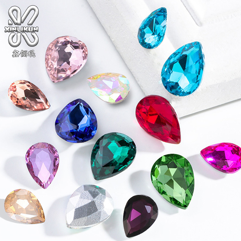 水滴形水晶ガラスドリル高級感カラーネイルドリル貼りガラスドリルdiyアクセサリー卸売り