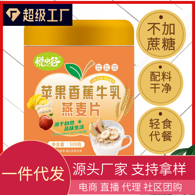 現物代発リンゴバナナ牛乳オートミール500グラムプラスチック缶朝食代食満腹シリアル食事