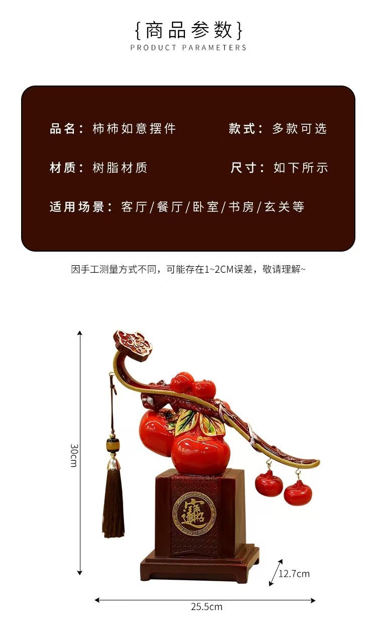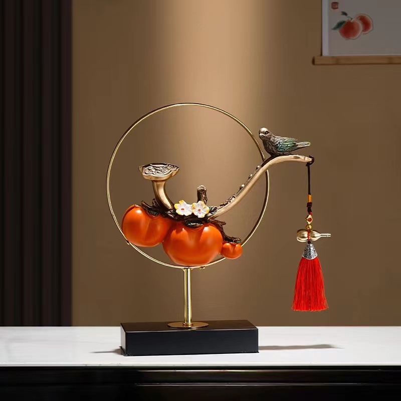 柿の置物「柿柿如意」、新中式ワインキャビネットの装飾、結婚祝い、新築祝いの贈り物、意味深い装飾、創造的なデザイン