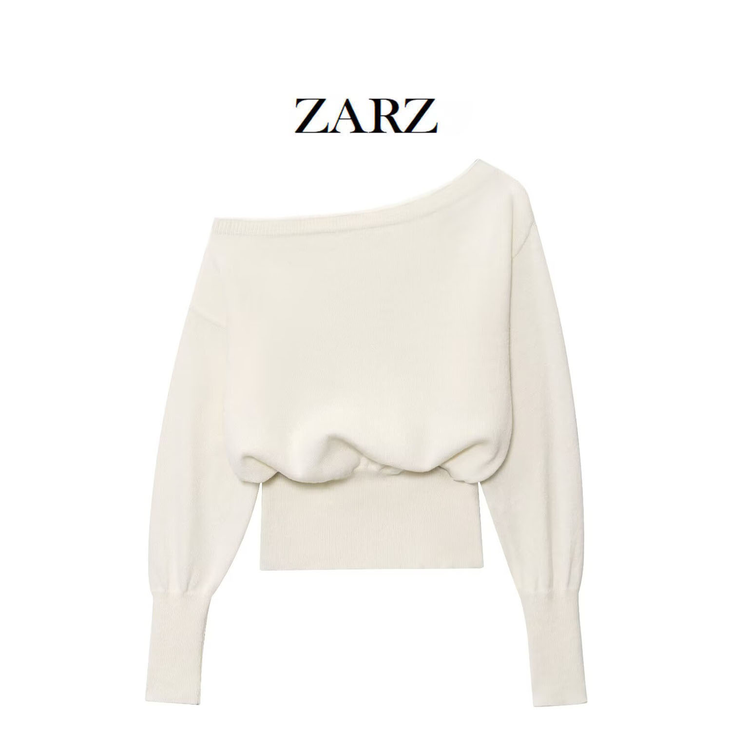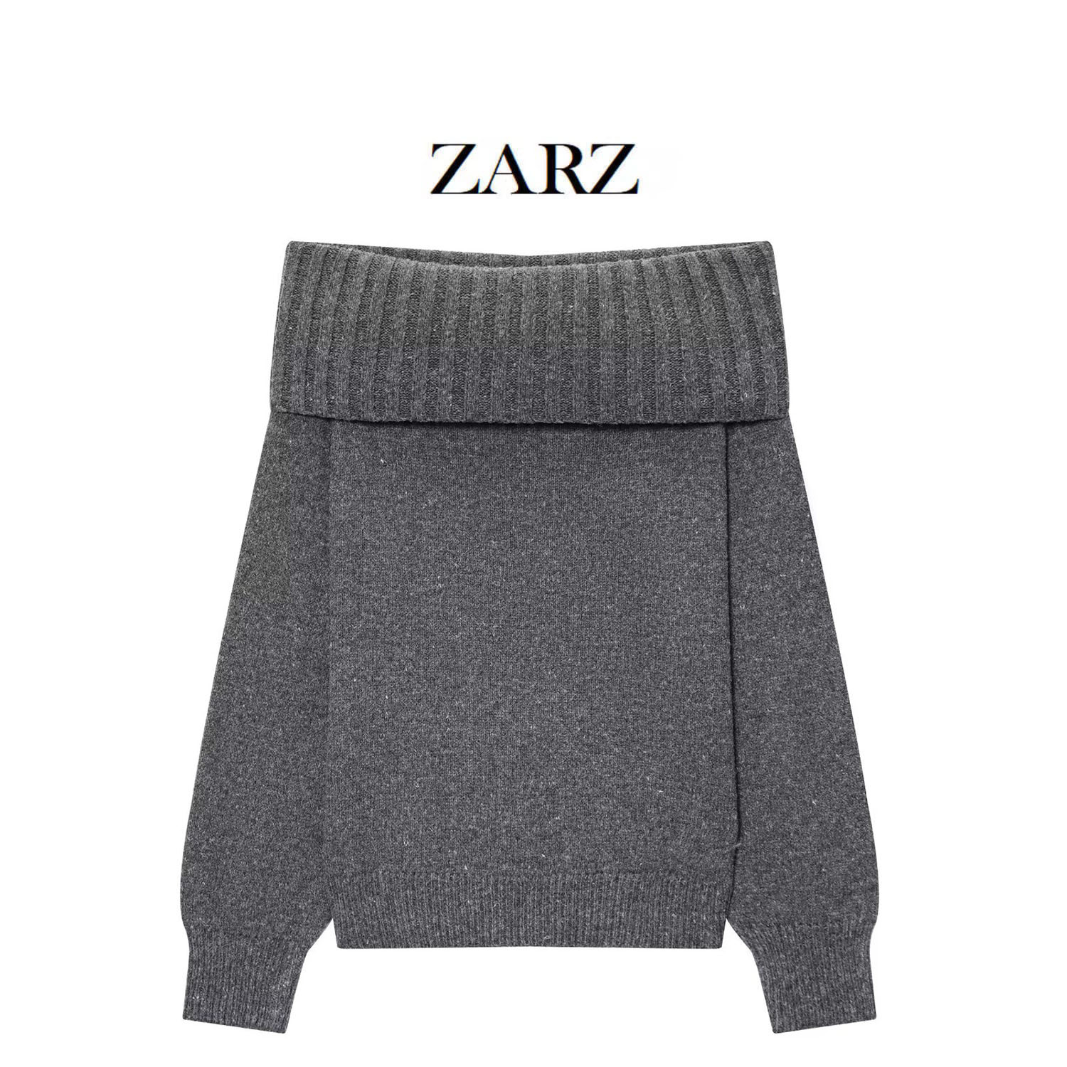 ZARZ 自制 欧美风 新款女装 洋气美式露肩宽松修身一字肩打底毛衣