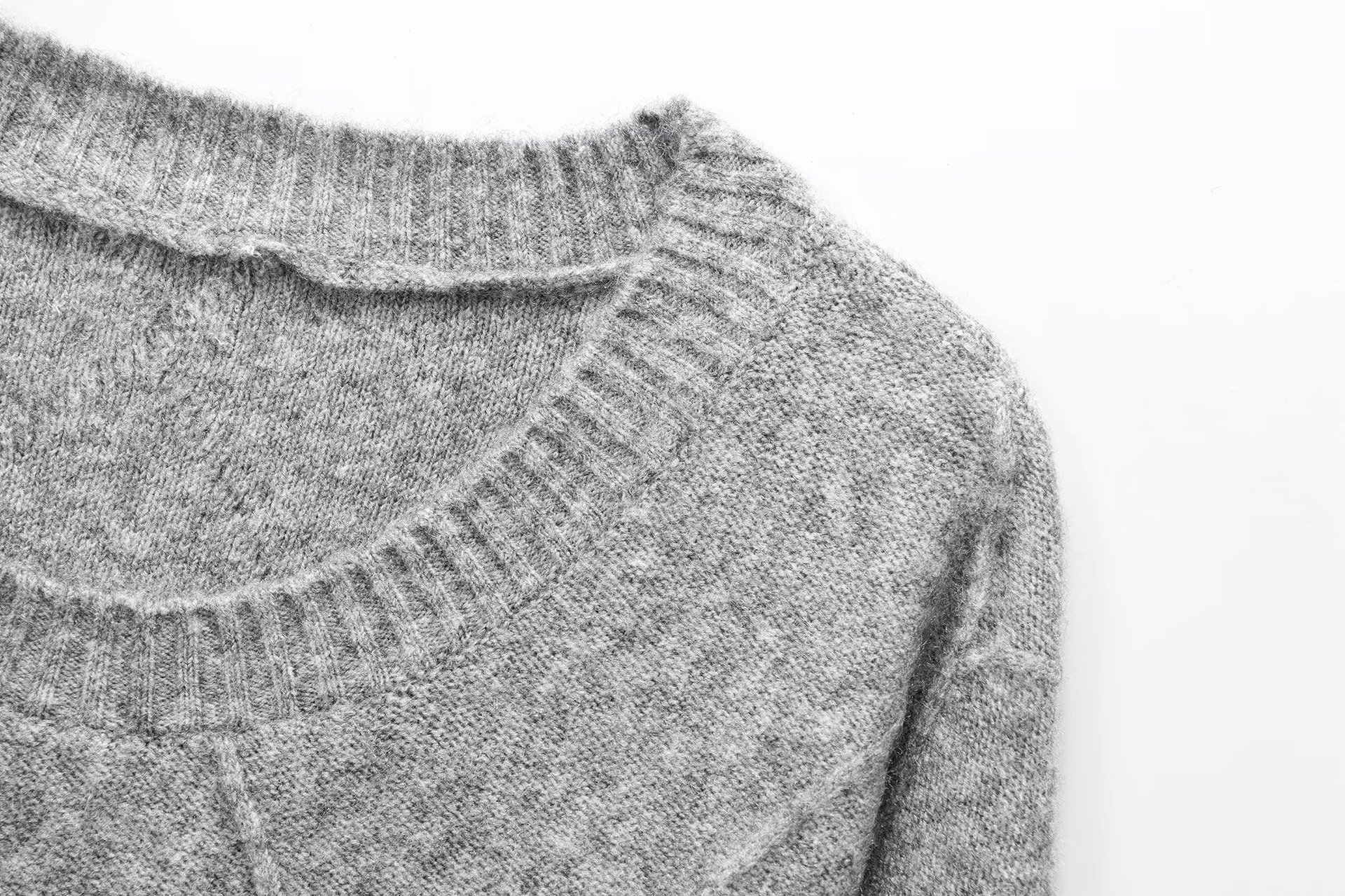 ZARZ 自制 欧美风 新款女装 翻领一字肩套头毛衣宽松纯色法式上衣