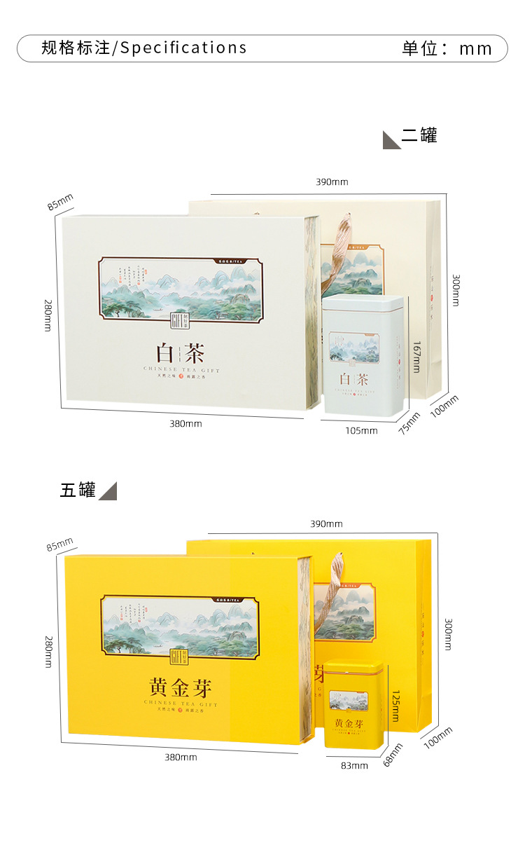 仕様とモデル ホワイトティーギフトボックス2-in-1(空箱)250g,ホワイトティーギフトボックス5in1(空箱)250g,ゴールデンバッド ギフトボックス 5-in-1 (空箱); 250g,早春白茶 2-in-1 (空箱); 250g,早春白茶 4-in-1 (空箱); 500g,早春白茶 5-in-1 (空箱); 250g