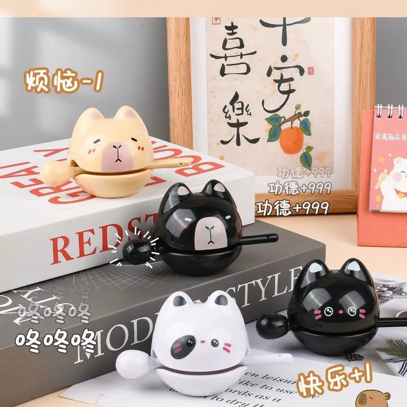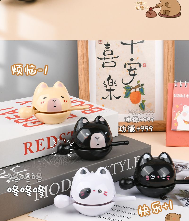 漫画風ストレス解消木魚おもちゃ、オフィスデスク飾り、仏教風叩き解消グッズ、メーカー卸売、在庫あり
