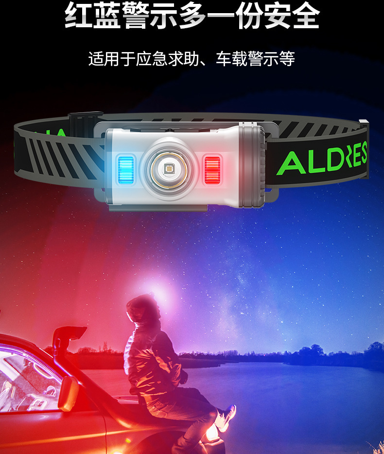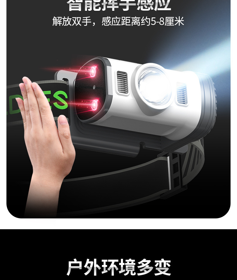 感应按键开关: 主灯白光强-弱-闪-红灯-红灯闪-绿灯-绿灯闪-红绿灯交叉闪-关,每个档位都可以挥手感应 每个档位都可以挥手感应