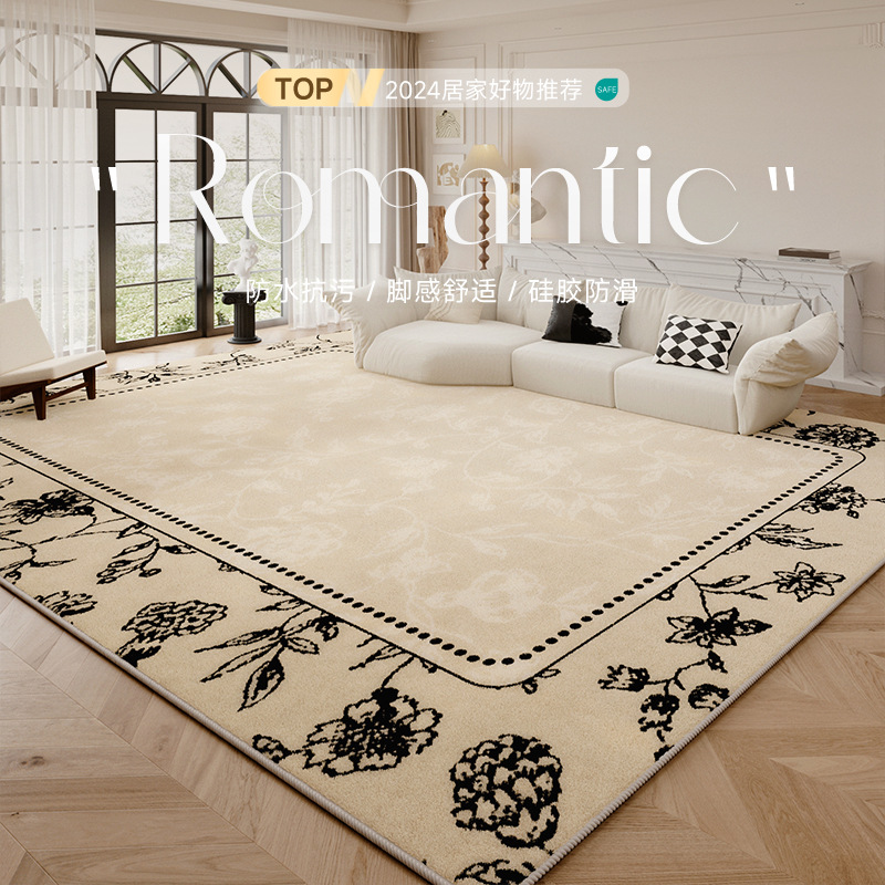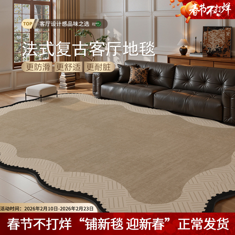 法式复古客厅地毯沙发卧室地垫免洗可擦高级感异形床边毯防水防污