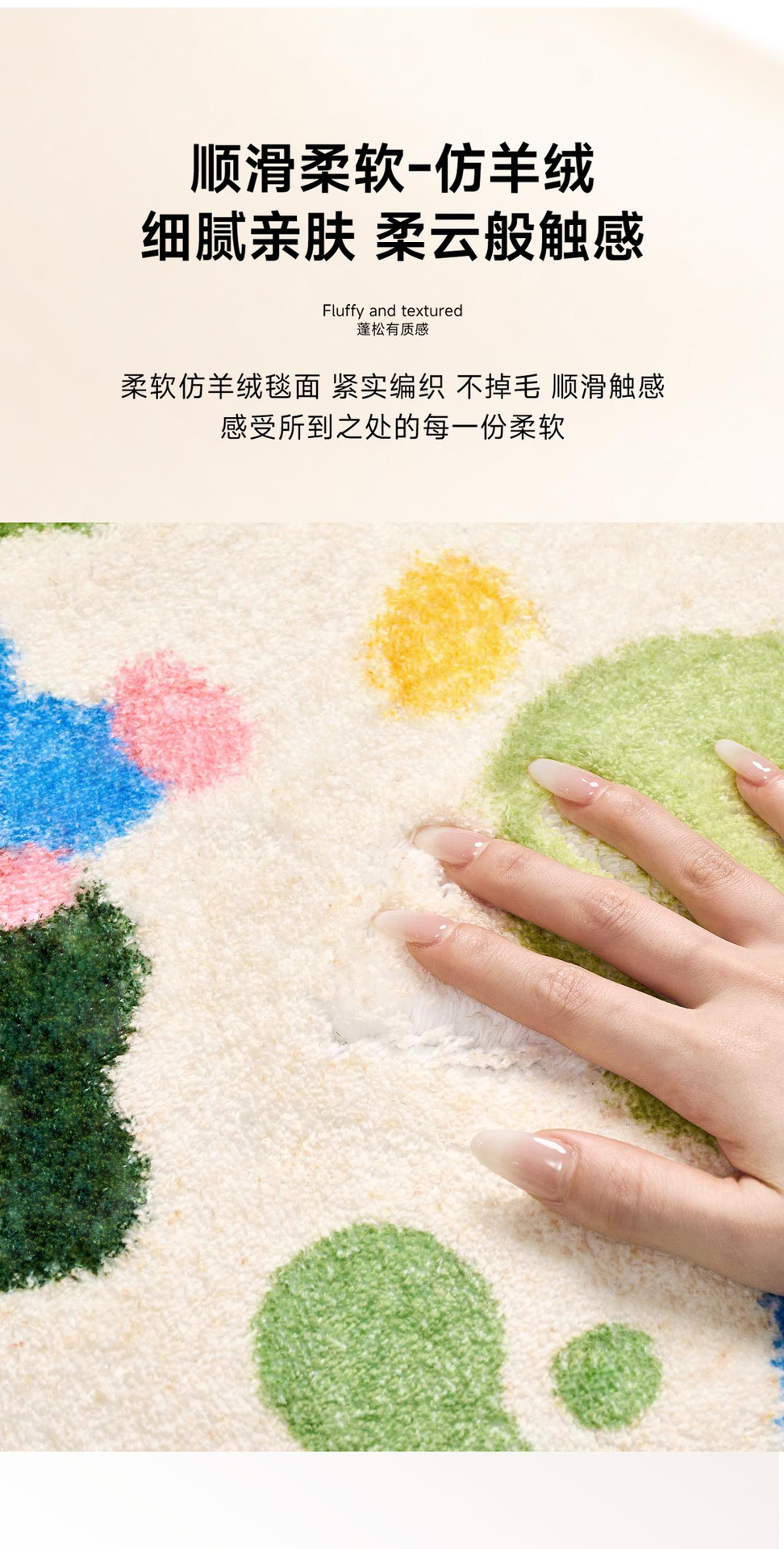 2025年新作 クリーム系カーペット 洗濯不要 拭き取り可能 寝室 ベッドサイドマット 無地 ライトラグジュアリー 高級感 リビングルームカーペット